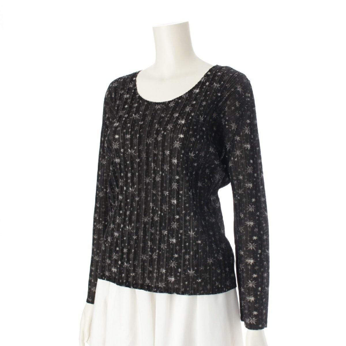 プリーツプリーズ イッセイミヤケ 星柄 総柄 長袖 クルーネック カットソー トップス PP23-FK341 ブラック×ホワイト 3