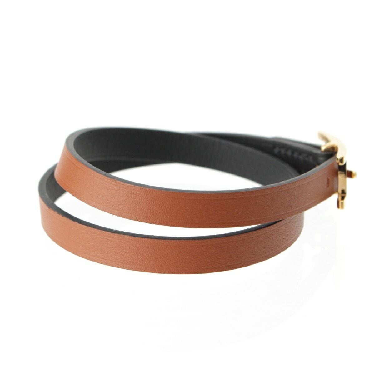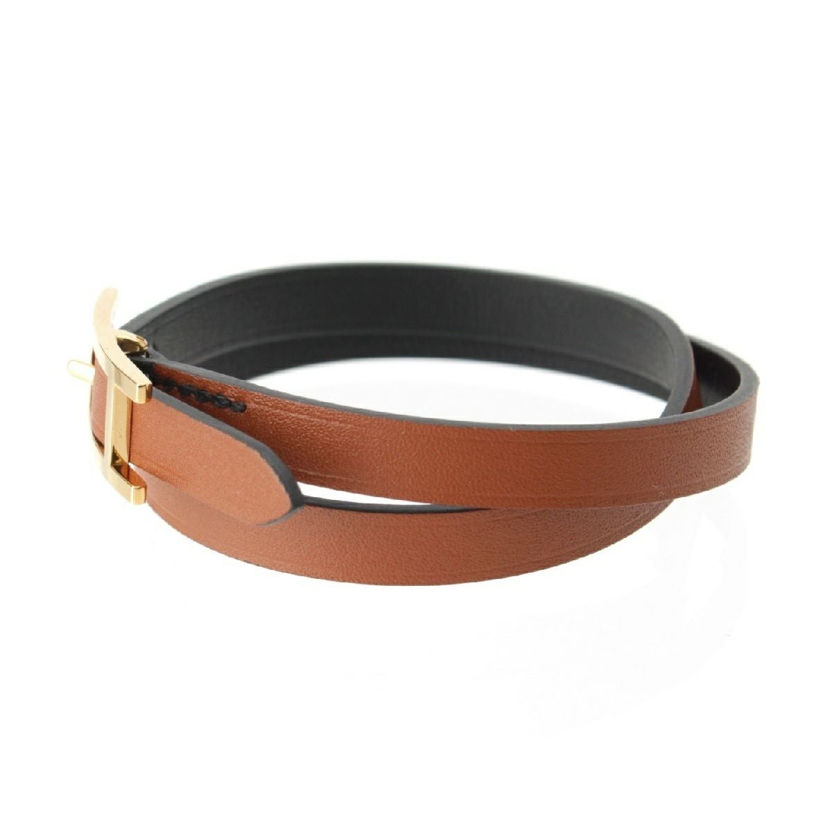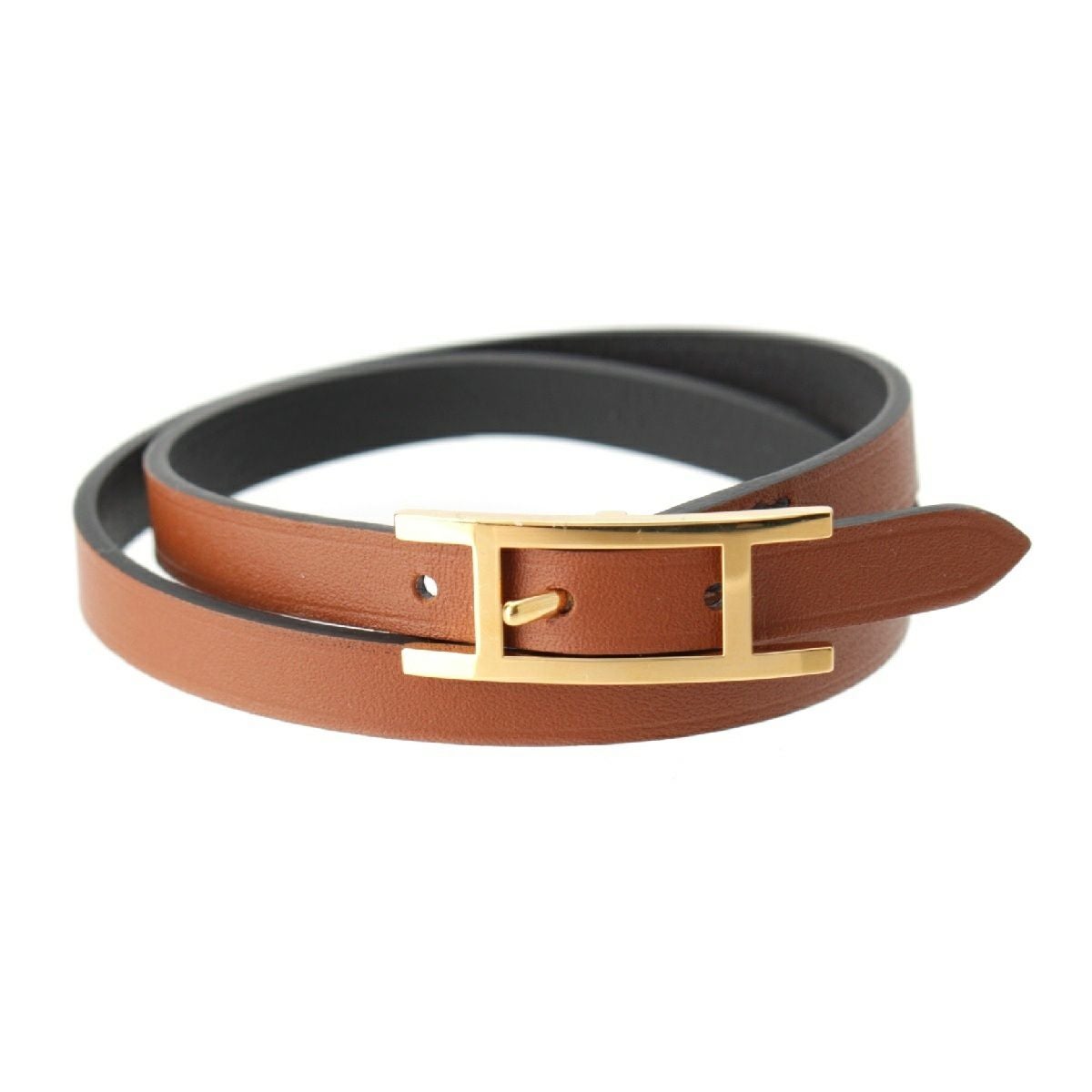 エルメス ビーアピ ドゥブルトゥール レザー Hバックル 2連ベルト ブレスレット アクセサリー ブラウン×ブラック ゴールド金具