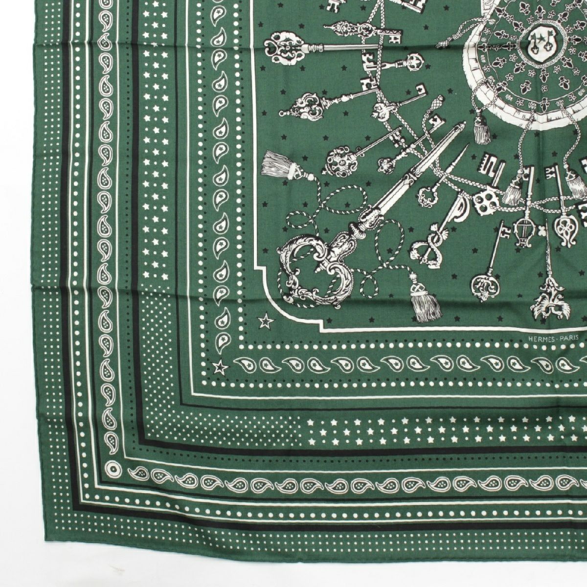 エルメス カレジェアン 140 カシミヤ×シルク Les Cles Bandana レクレ バンダナ 大判 スカーフ ストール ショール グリーン