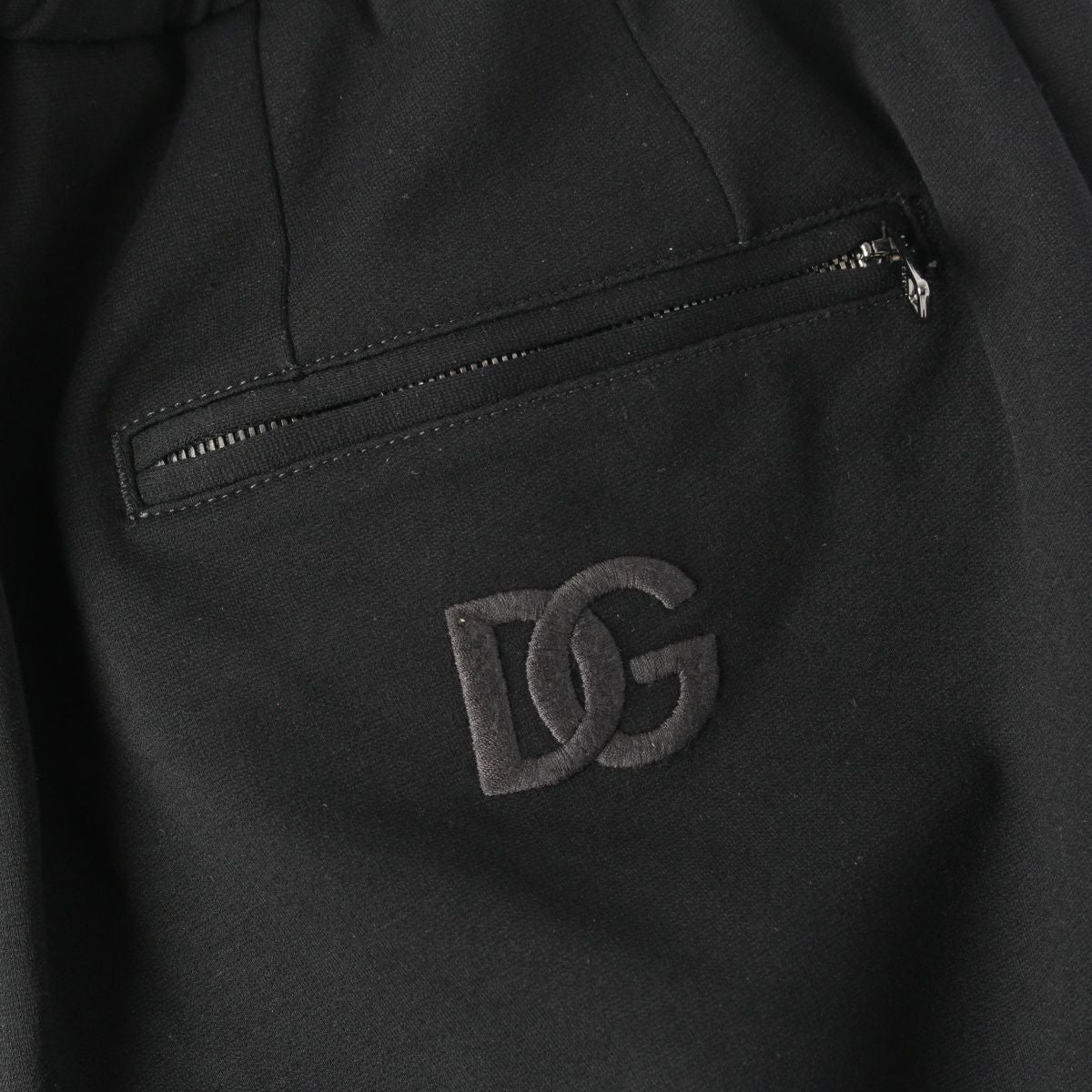 ドルチェアンドガッバーナ レーヨン ロゴプレート ジップ スウェット パンツ 刺繍 ブラック 44