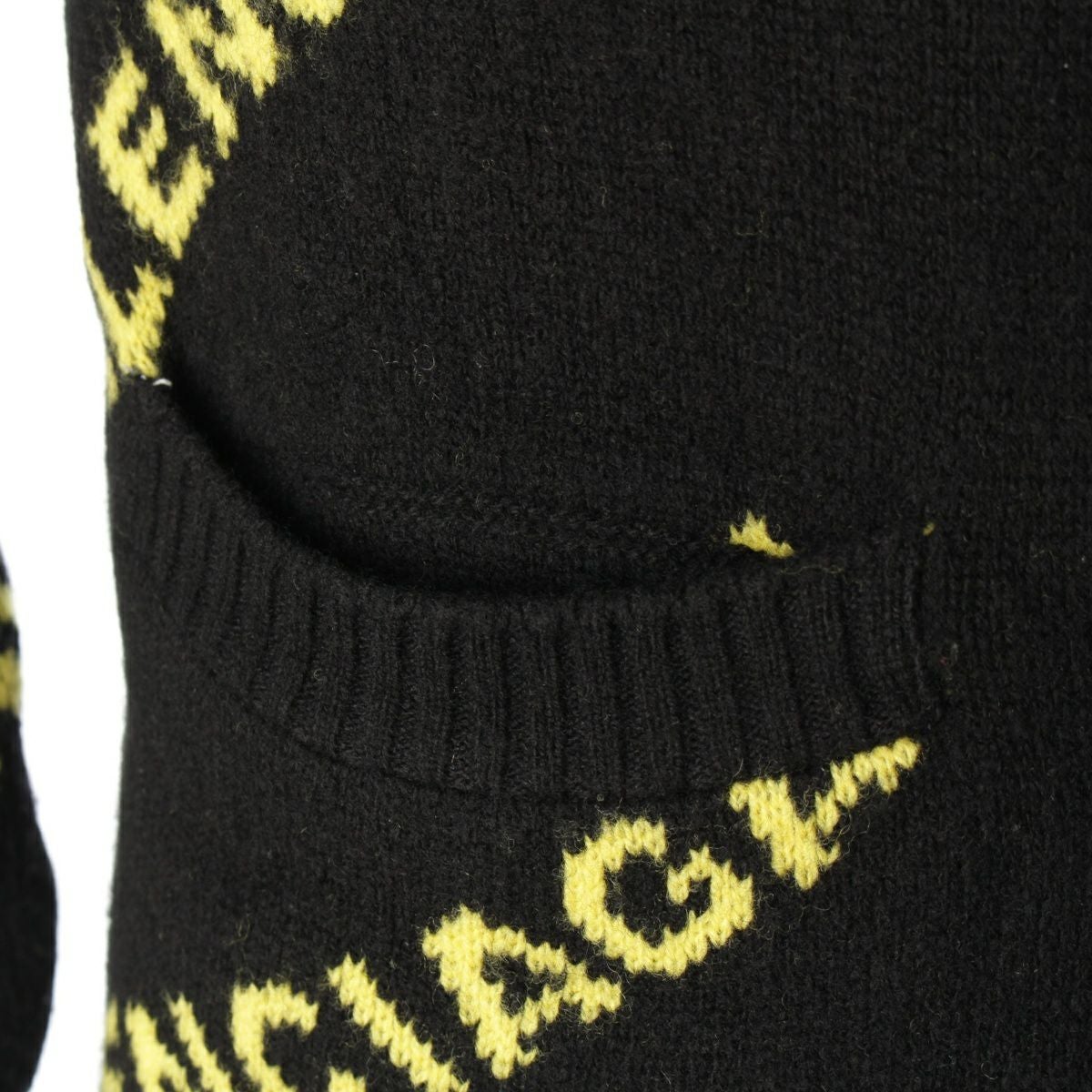 バレンシアガ ウール ロゴ 長袖 ニット カーディガン セーター トップス ブラック イエロー XS