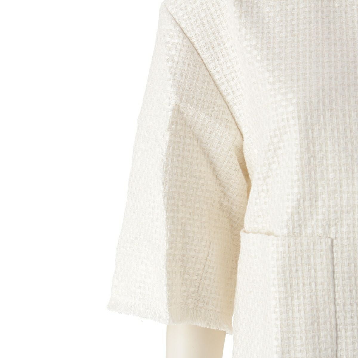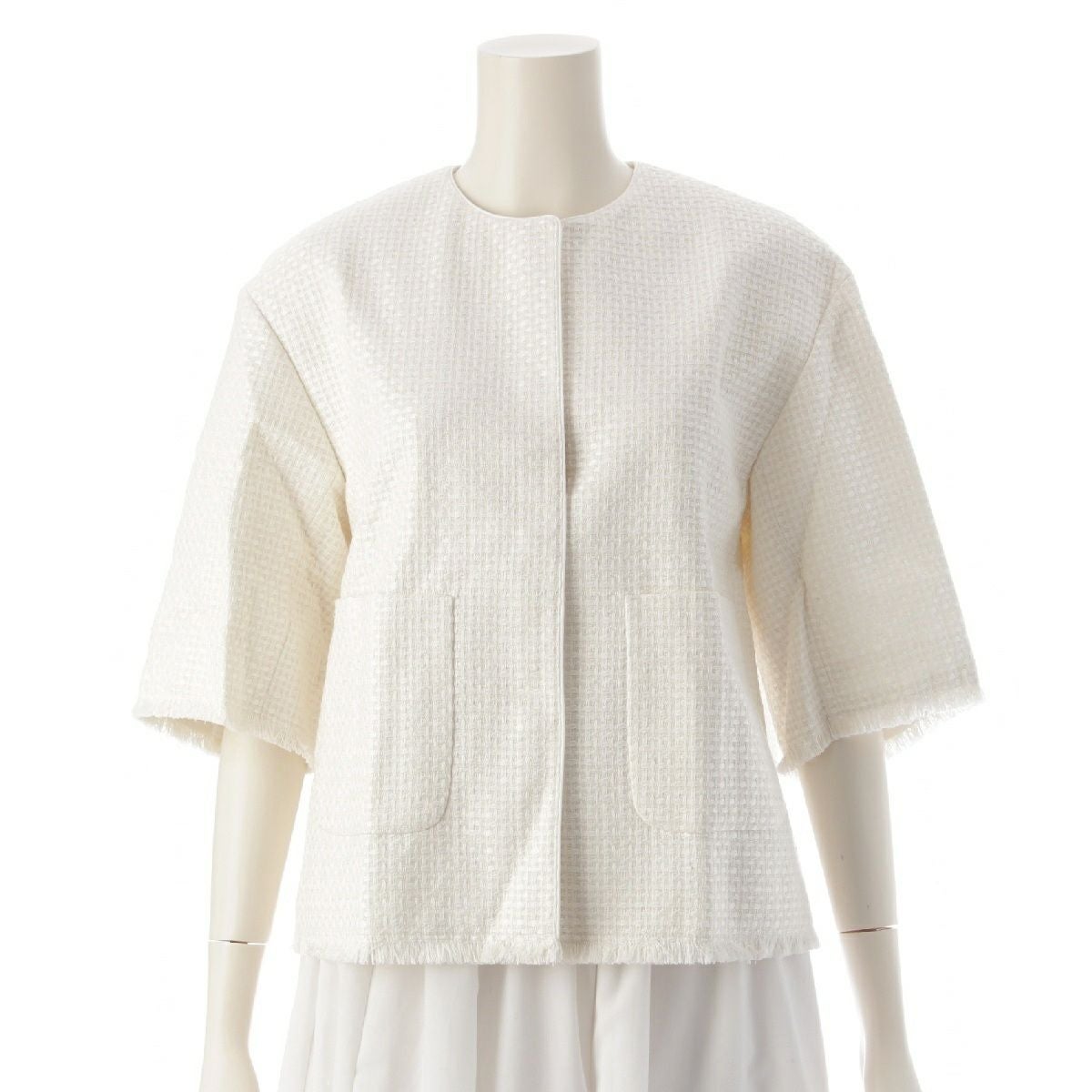 ドゥロワー 24SS SUMMER シルク フリンジショートスリーブ ノーカラー ブラウス トップス ジャケット 6521-299-1191 ホワイト