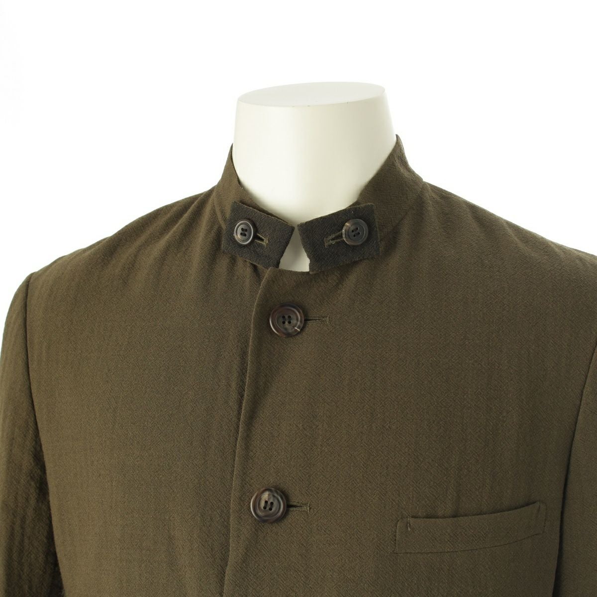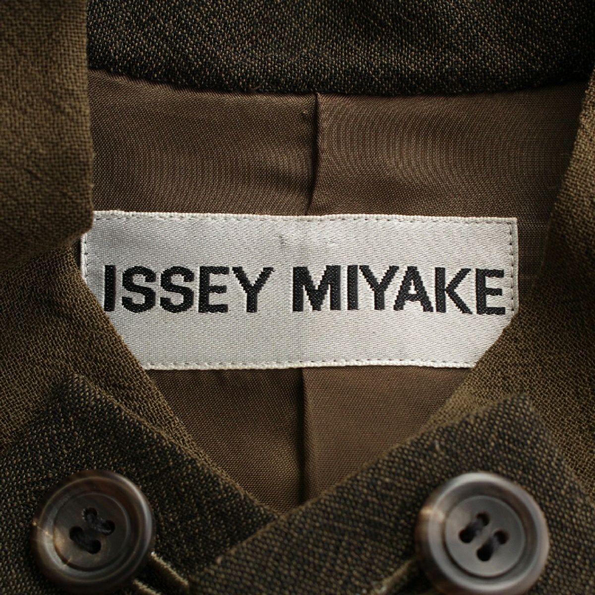 イッセイミヤケ ウール デザイン襟 マオカラー ノーカラージャケット IM53-FD119 カーキ M