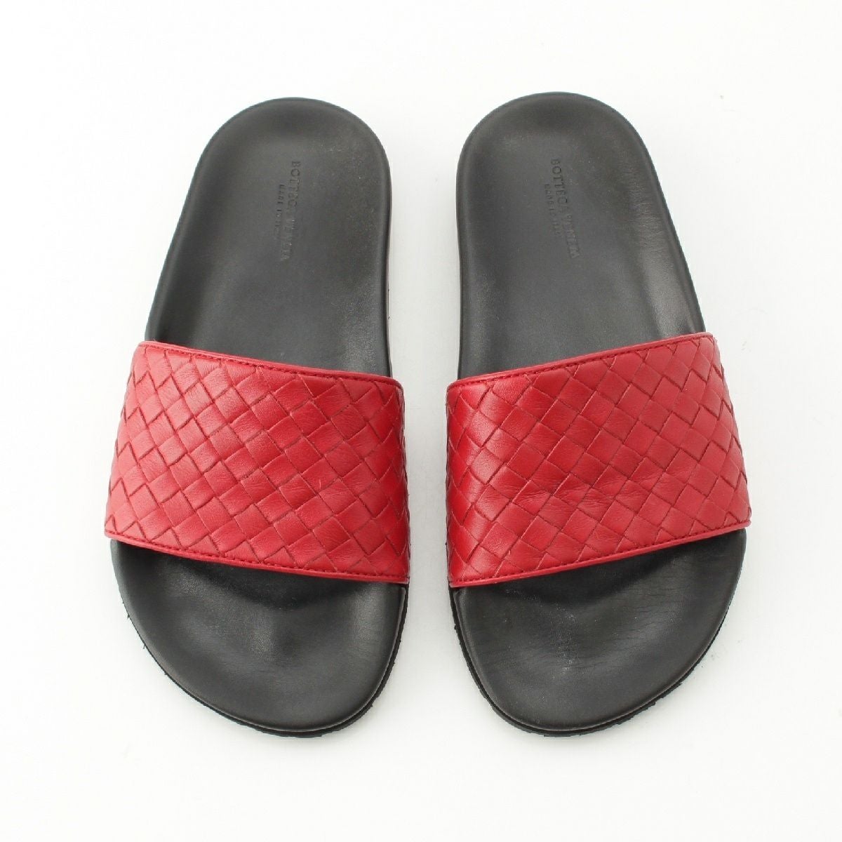 ボッテガヴェネタ レザー イントレチャート フラット サンダル ブラック レッド 36