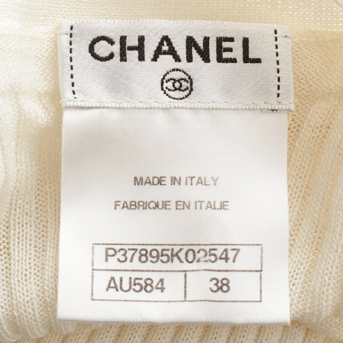 シャネル コットン×シルク ココマーク カメリアボタン リブニット ロング カーディガン ワンピース コート P37895K02547 ホワイト 38