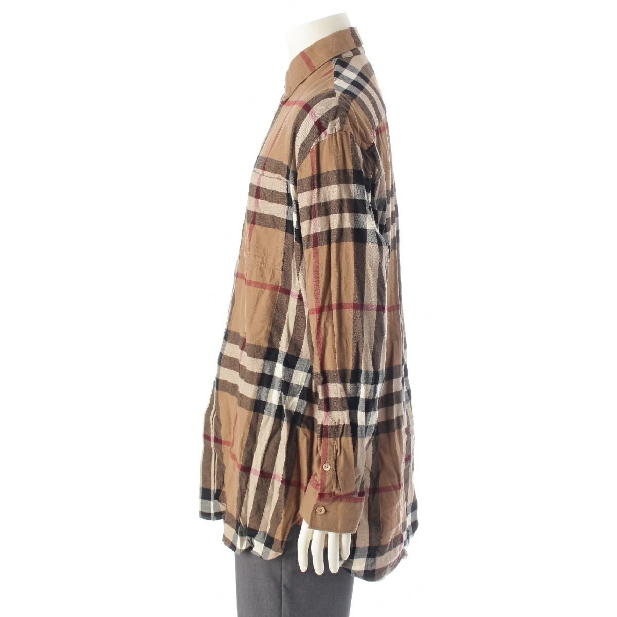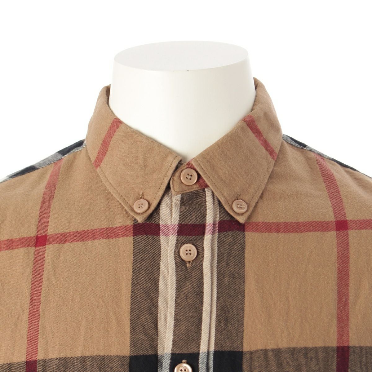 バーバリー コットン ノバチェック ボタンダウン 長袖シャツ トップス ブラウン×ブラック×レッド L