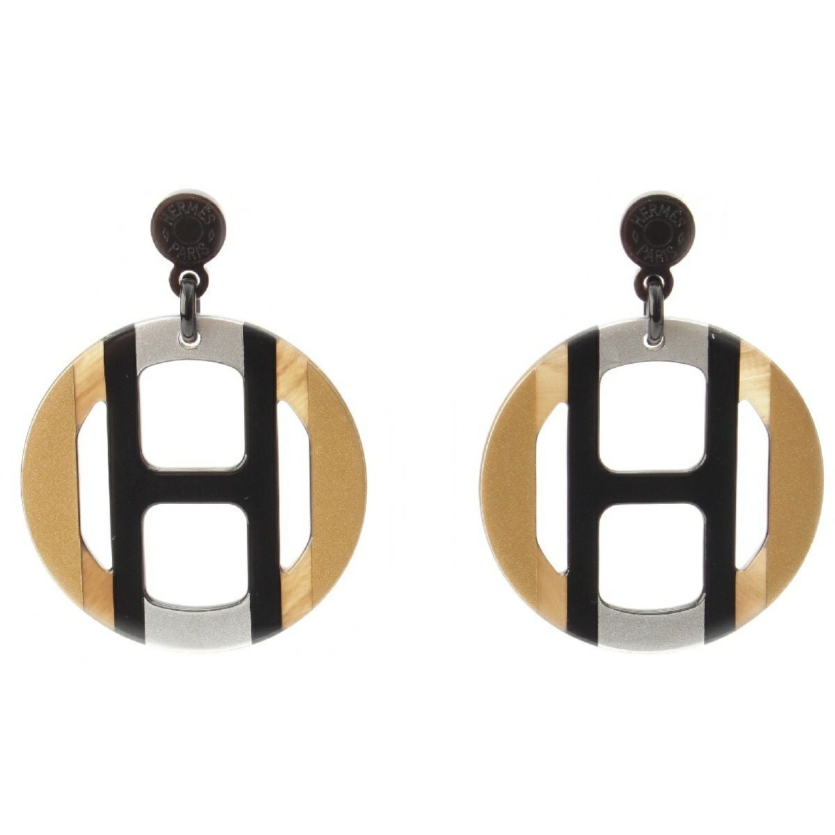 エルメス バッファローホーン Hエキップ セリエ ピアス イヤリング アクセサリー ゴールド シルバー ブラウン