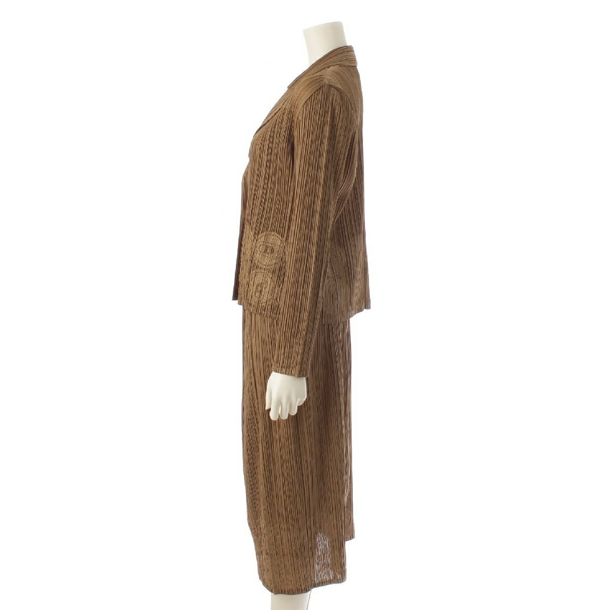 プリーツプリーズ イッセイミヤケ プルタブ 型押し スカートセットアップ ジャケット スーツ PP83-JD722 PP83-JG725 ブラウン 3