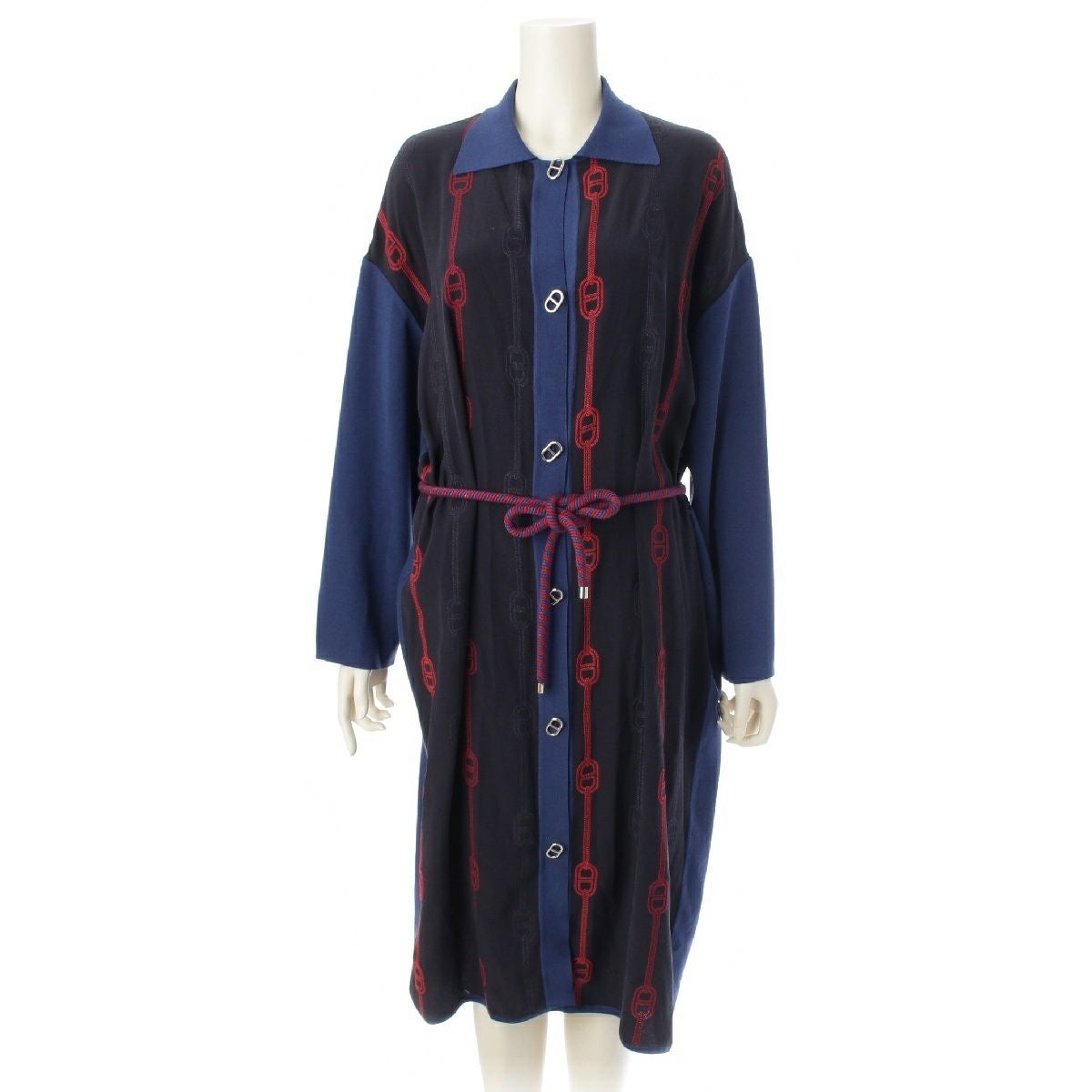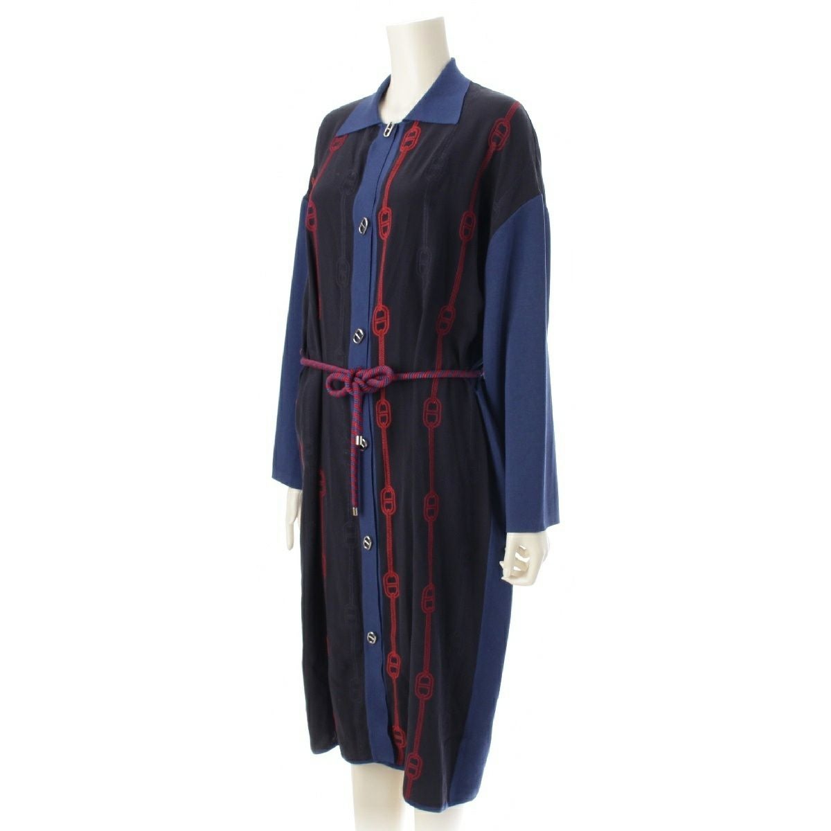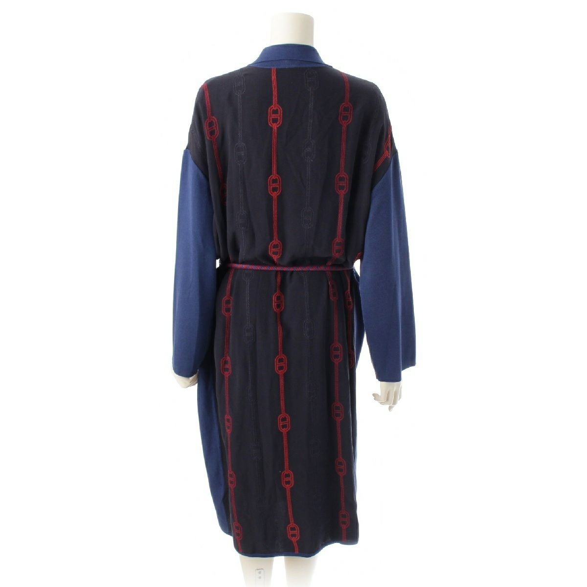 エルメス シルク コットン シェーヌダンクル ロング カーディガン ワンピース 3E2812DV ブラック ブルー 38