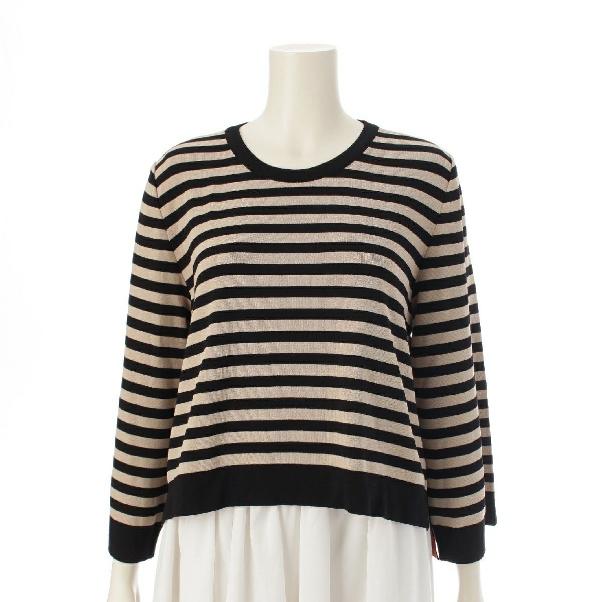 フォクシー 22年 デイジーリン ボーダー スリット ヘムトップス ニット 6707 ベージュ ブラック 42