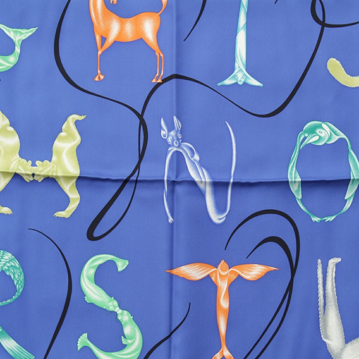 エルメス カレ90 シルク Faune Lettree アルファベットの動物誌 スカーフ アニマル 生物 ブルー