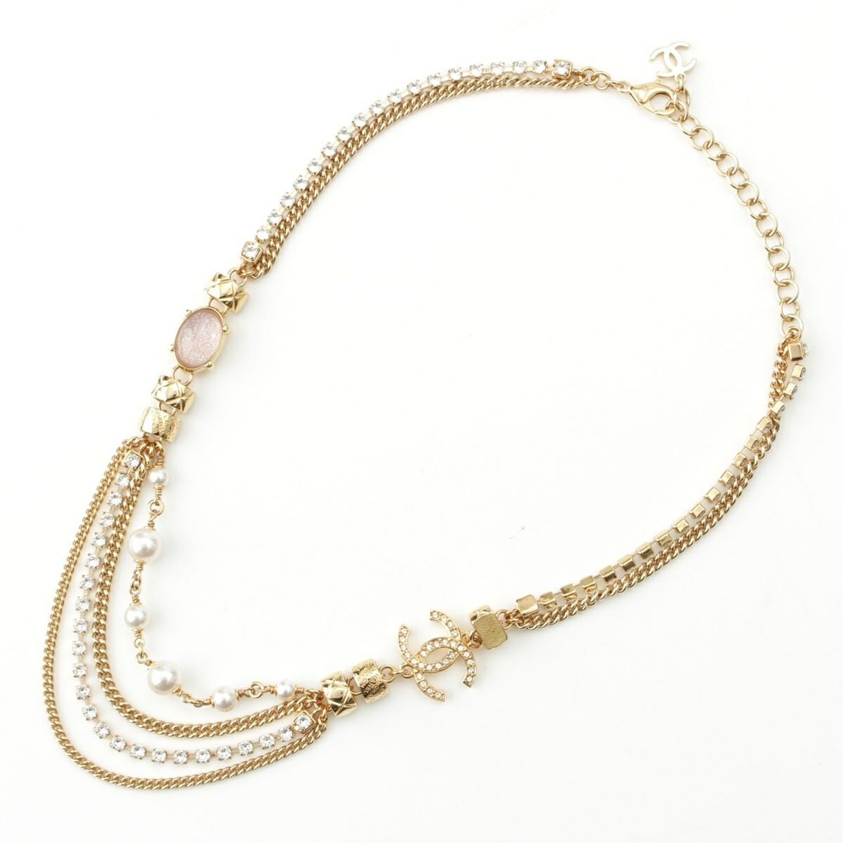 シャネル C24P GP ココマーク ストーン クラッシュ チェーン ロゴ ネックレス アクセサリー ゴールド