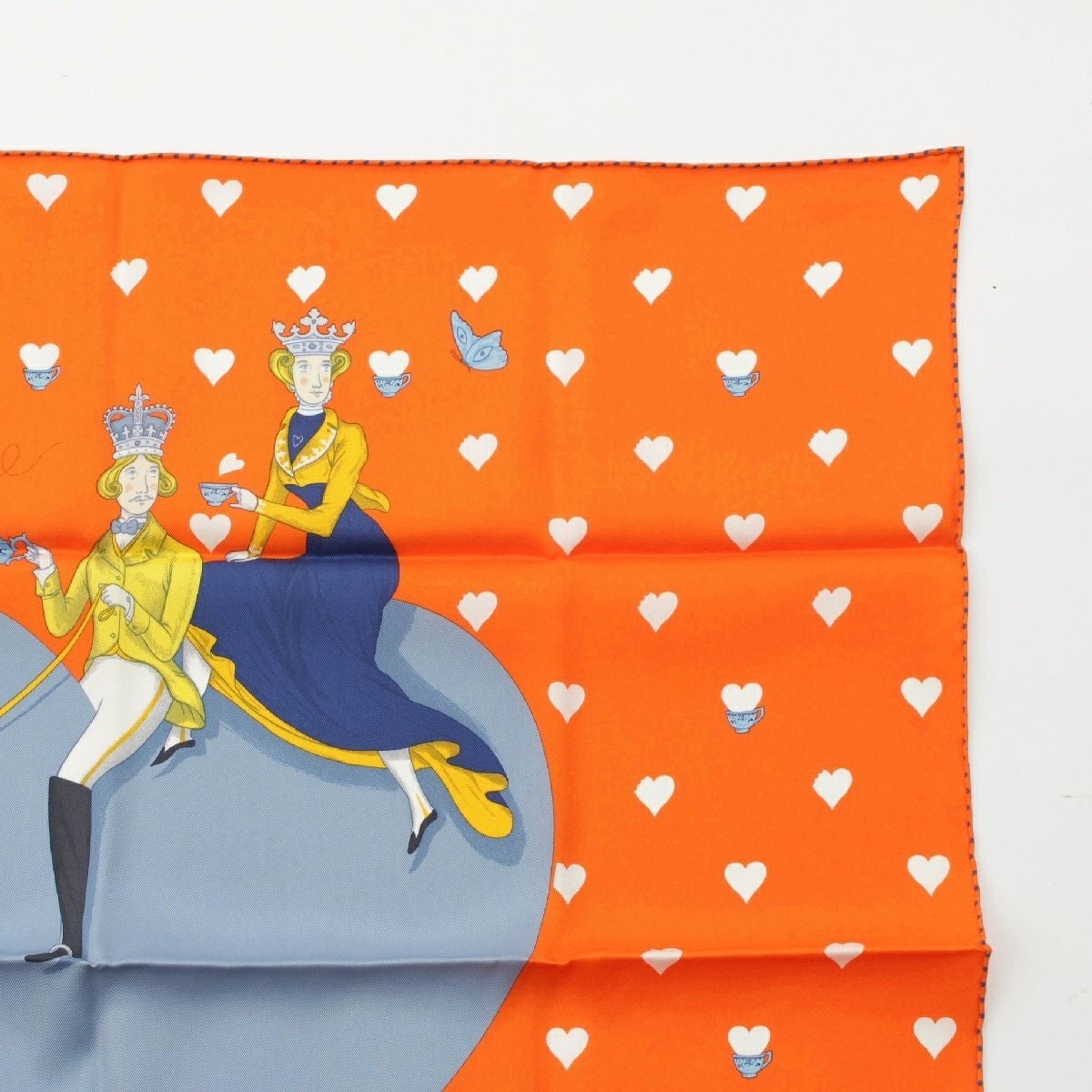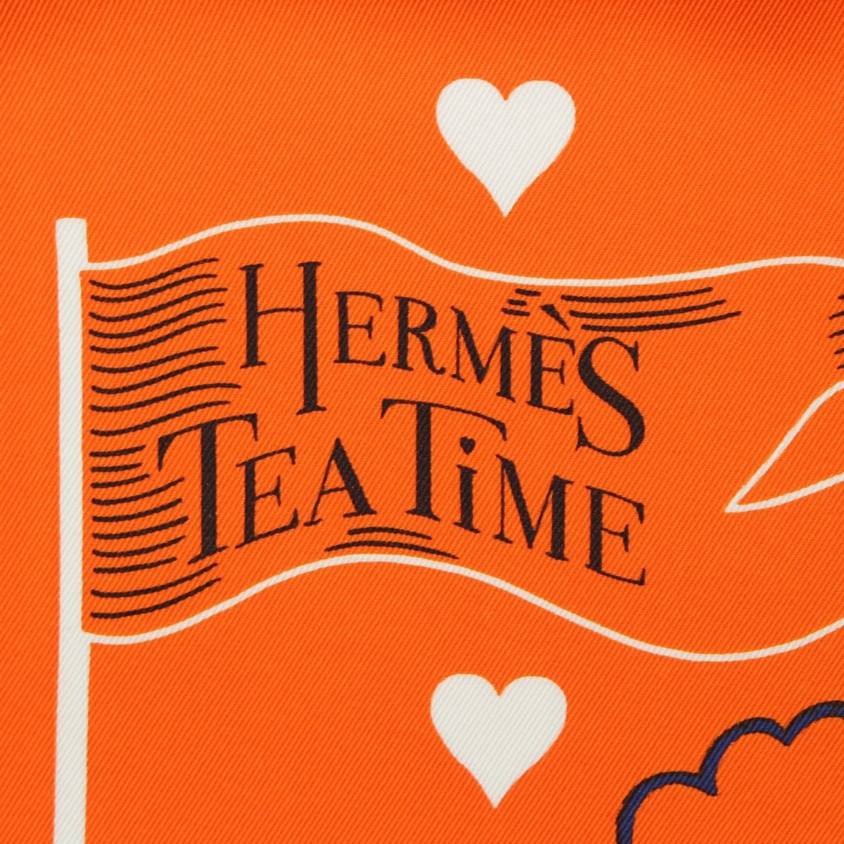 エルメス シルク カレ70 Tea Time ティータイム ハート スカーフ オレンジ