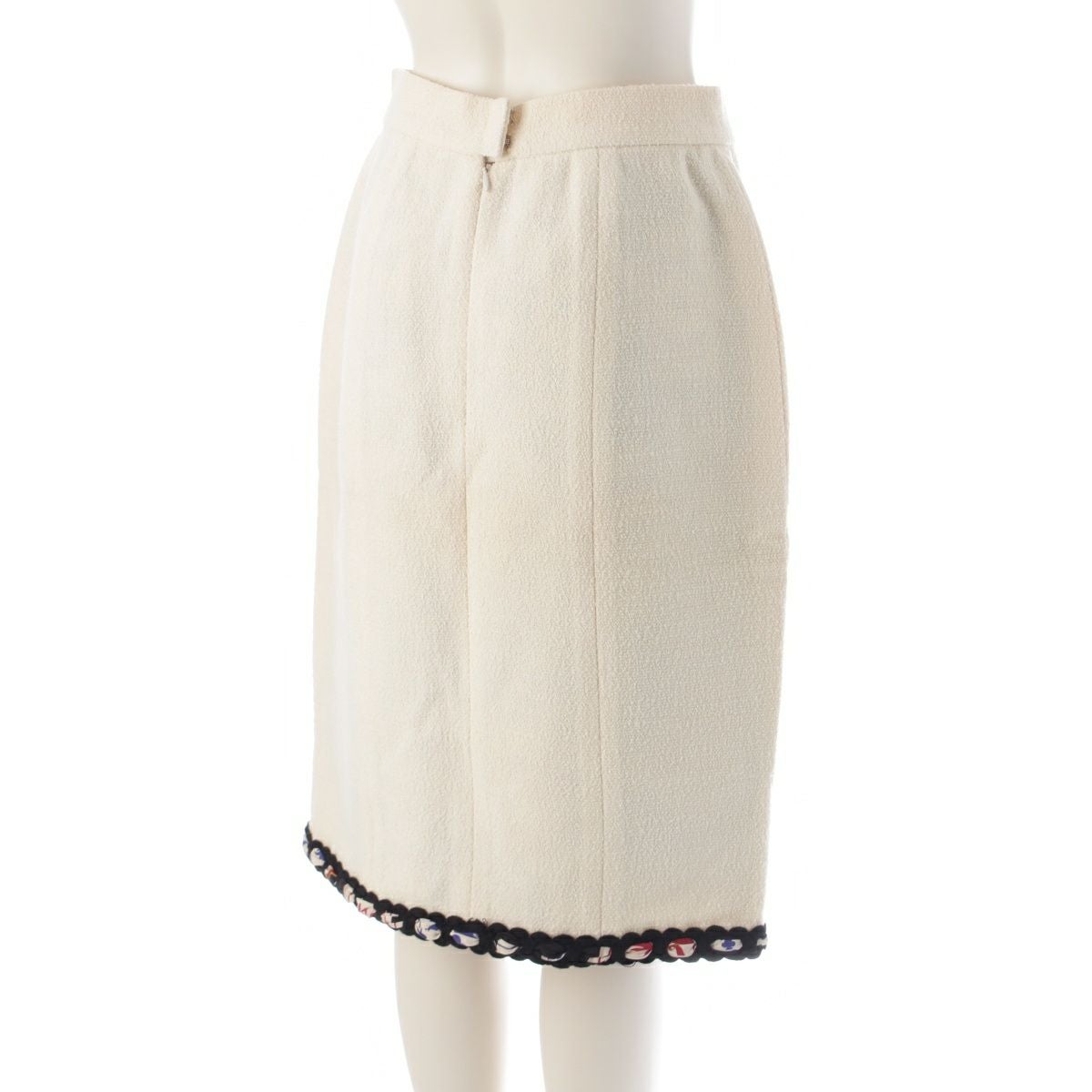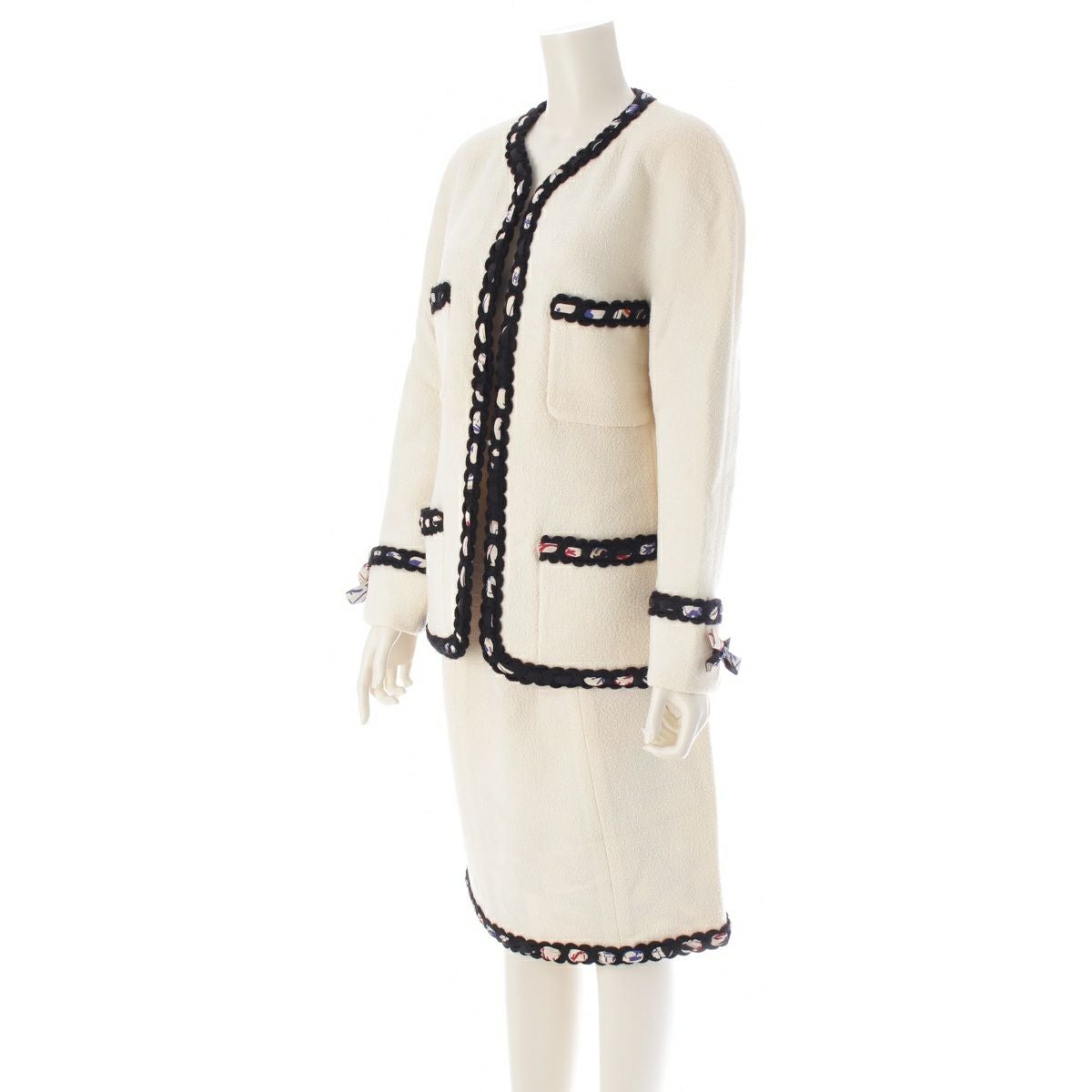シャネル 91年春夏 ヴィンテージ ウール スカートセットアップ トランプ柄裏地 ブレードトリミング ホワイト 40