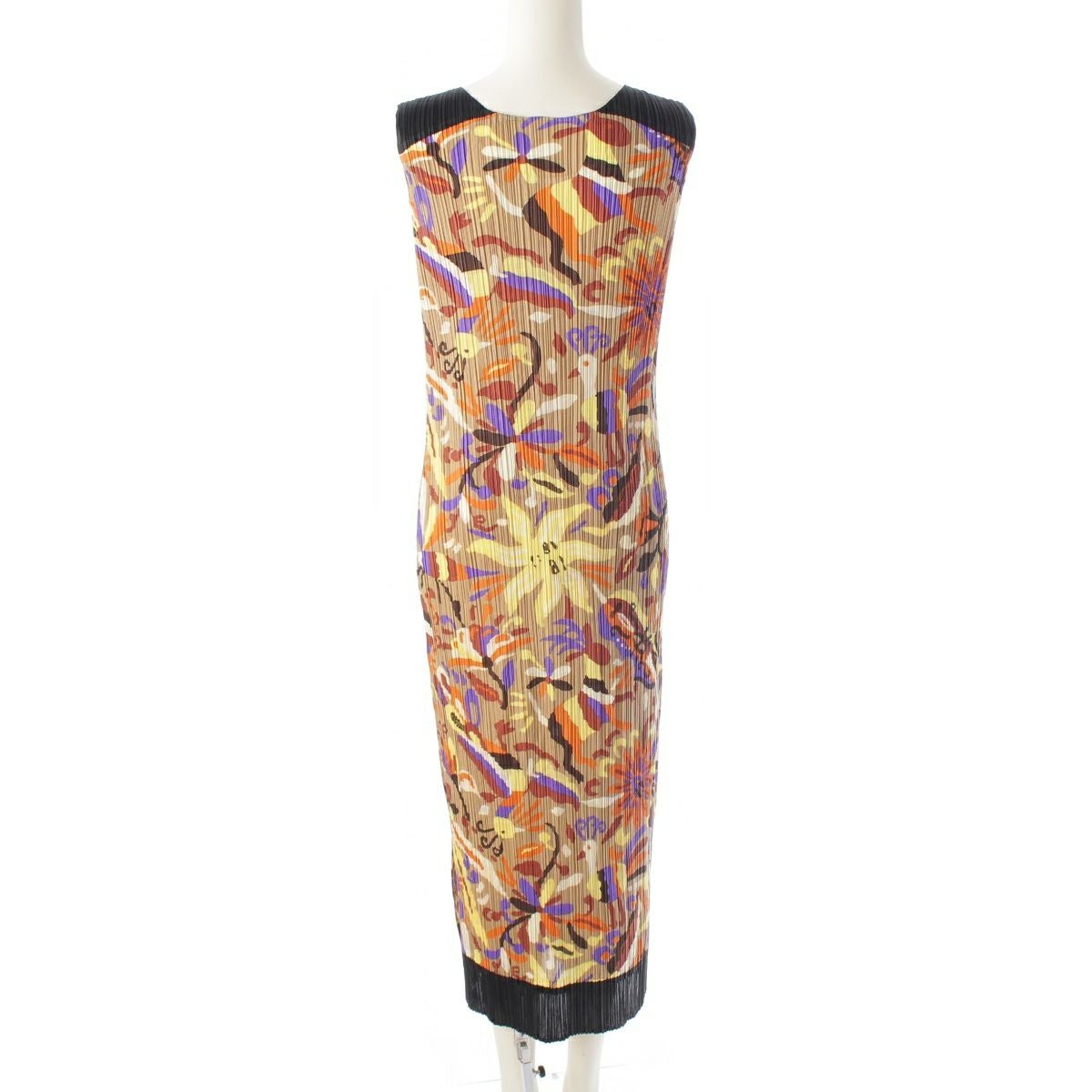イッセイミヤケ 16年 太陽 孔雀 総柄 プリント ノースリーブ ワンピース PP63-JH585 マルチカラー 4