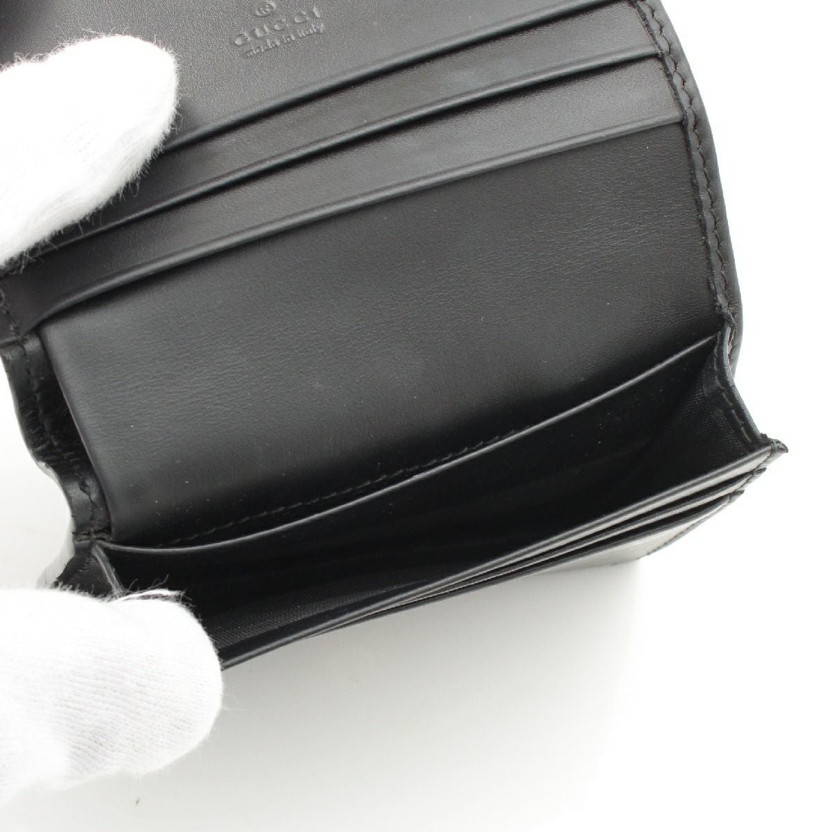 グッチ GGシマ レザー リボン コンパクトウォレット 小物 ロゴ型押し 二つ折り財布 406924 ブラック