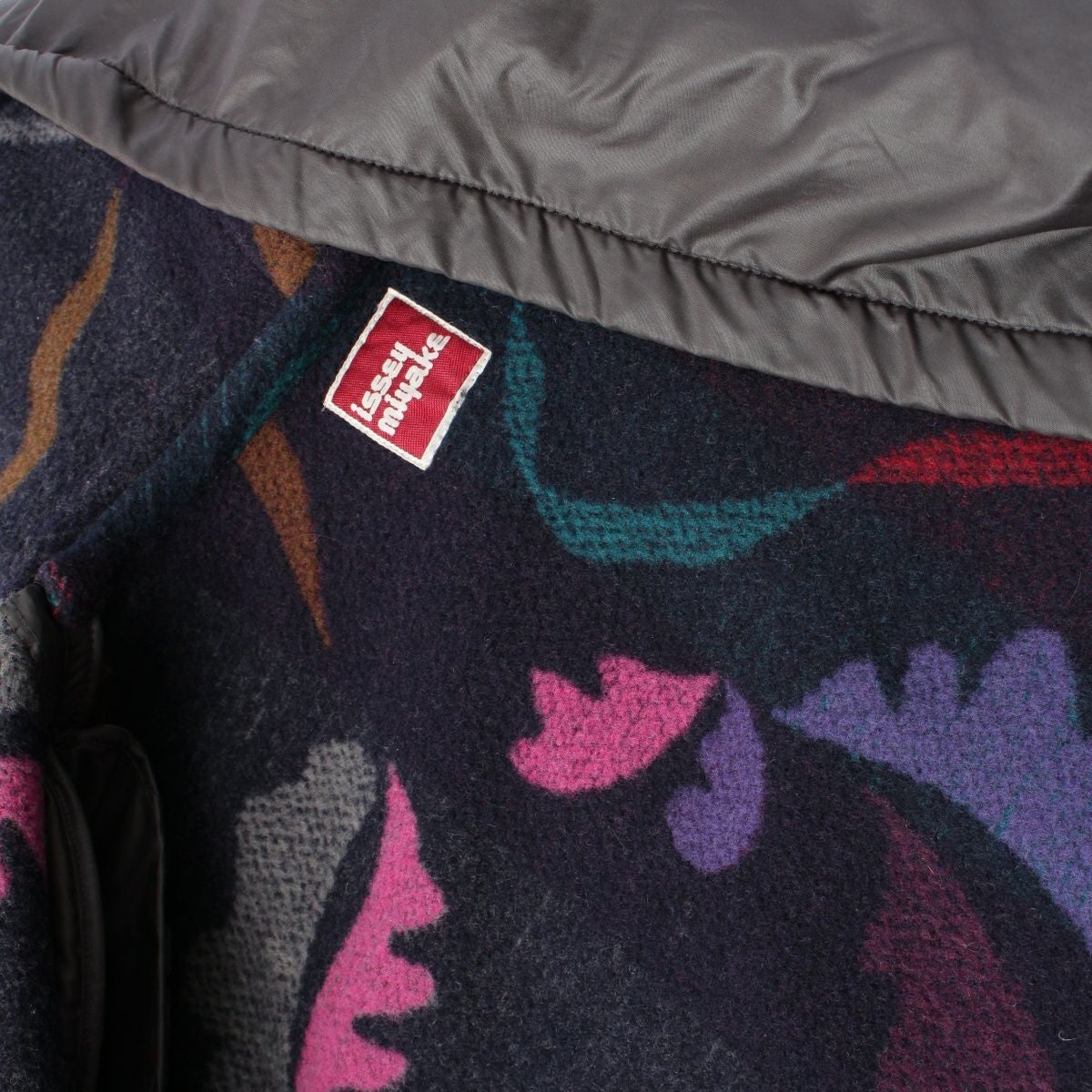 イッセイミヤケ 70’s 初期タグ 裏地ボア 総柄 フーディ ジャケット パンツセットアップ JF33111 ダークグレー 9
