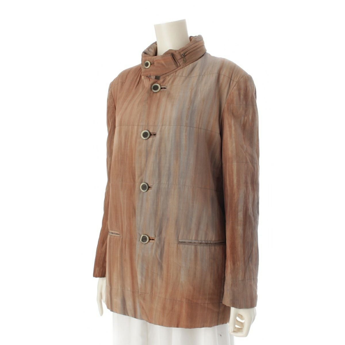イッセイミヤケ シルク コットン マーブル グラデーション フード付き テーラードジャケット トップス IM33-FD010 ブラウン M