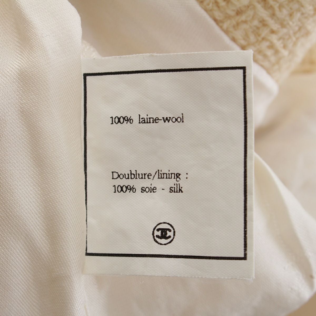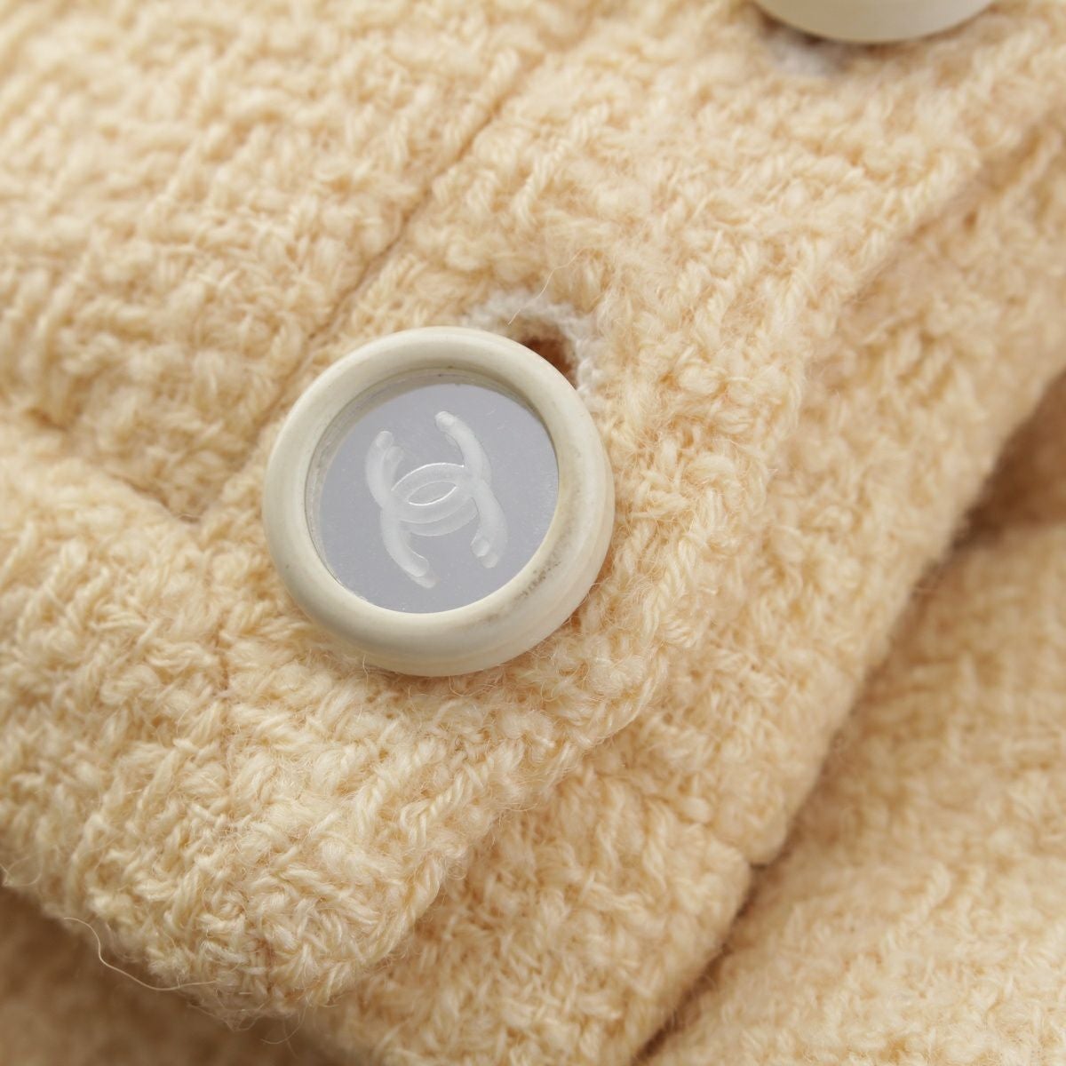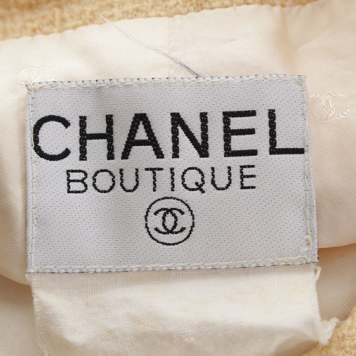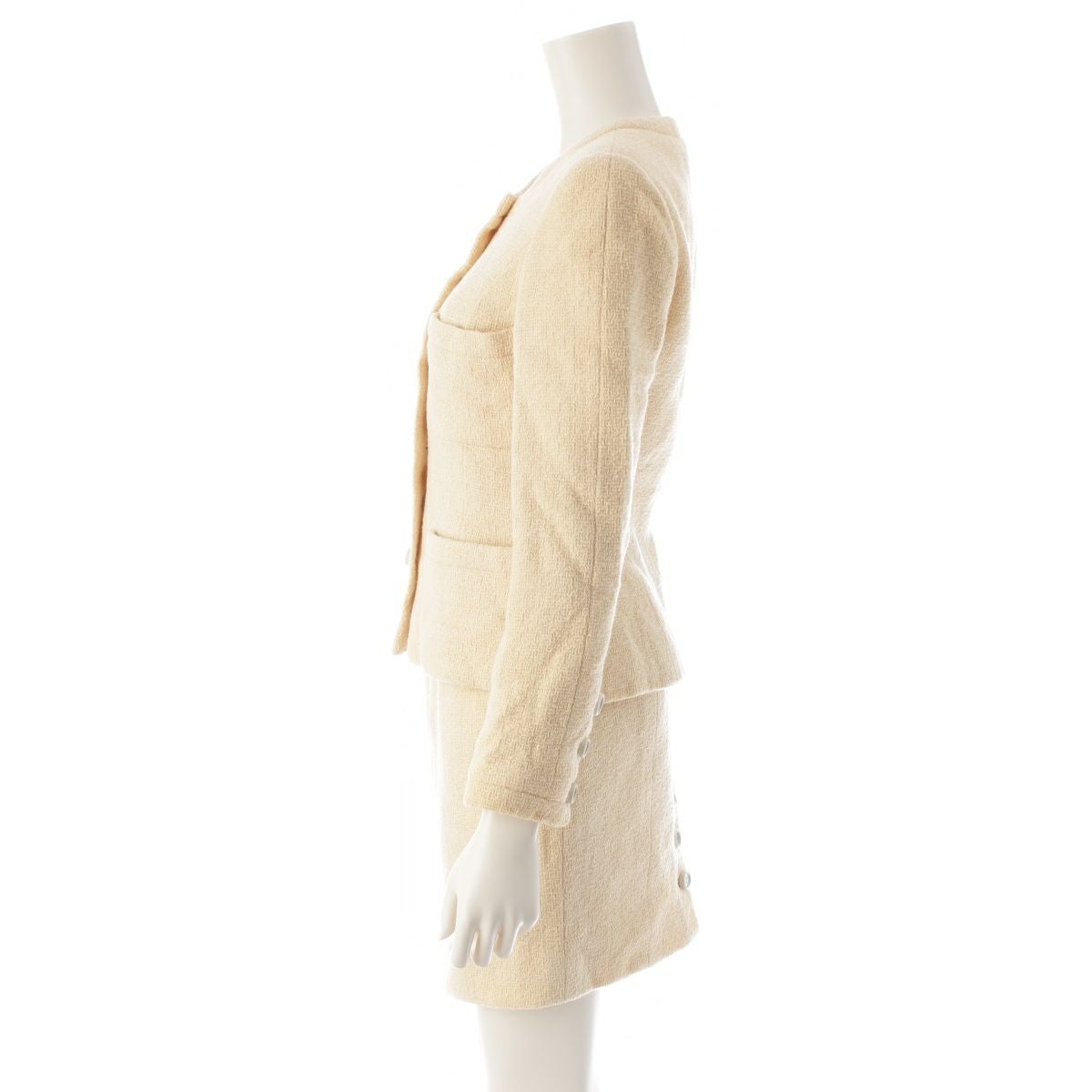 シャネル 90s ウール ツイード ココボタン ミラー ノーカラー ジャケット スカートセットアップ スーツ イエロー