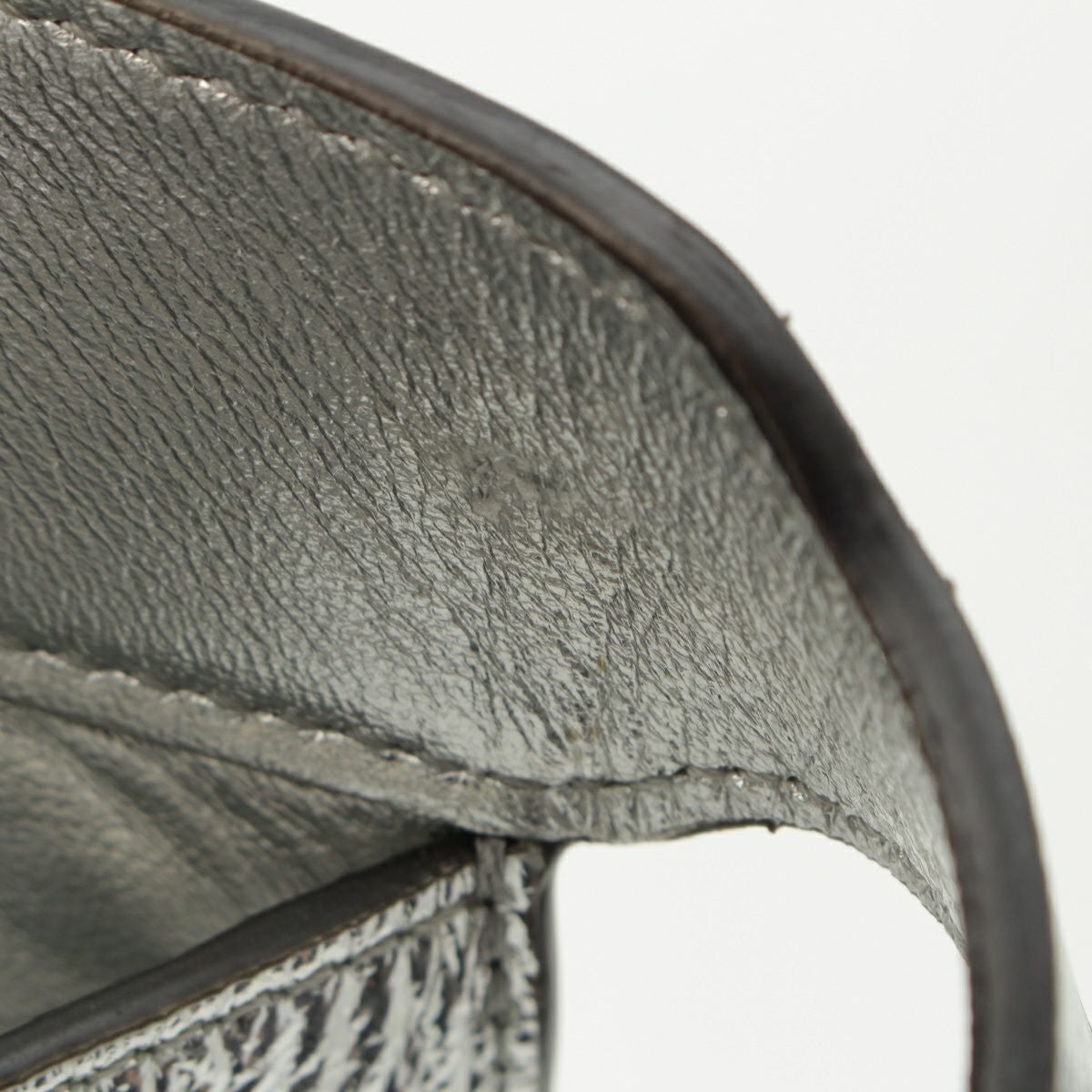 ダメージ箇所: 金具に汚れ/くすみ/傷、内側に汚れ/傷、底足に擦れ、持ち手裏に変色/擦れ、