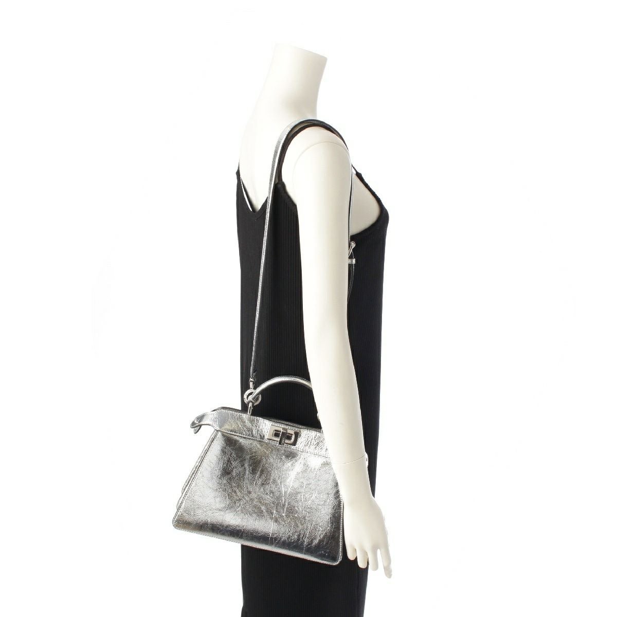 フェンディ ピーカブー アイシーユー スモール 2WAY ショルダー ハンドバッグ 8BN327 シルバー
