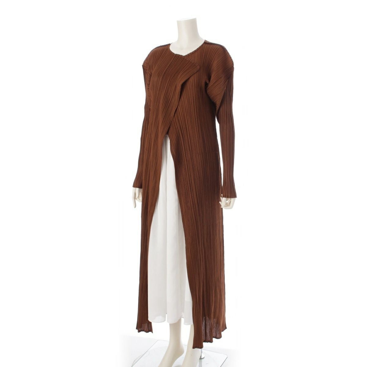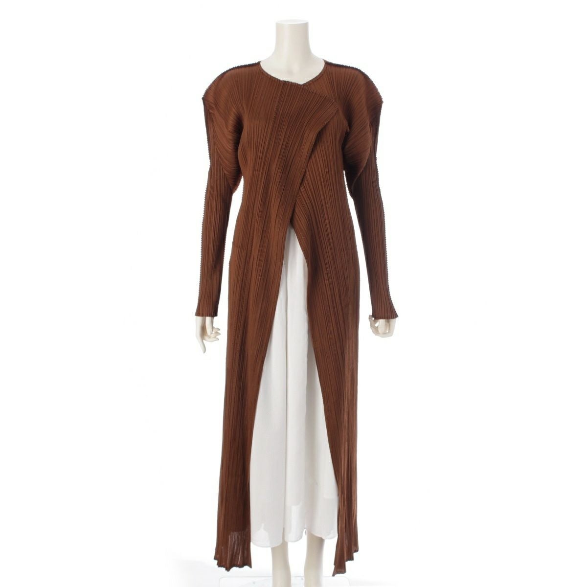 プリーツプリーズ イッセイミヤケ ロング カーディガン トップス PP33-JA128 ブラウン