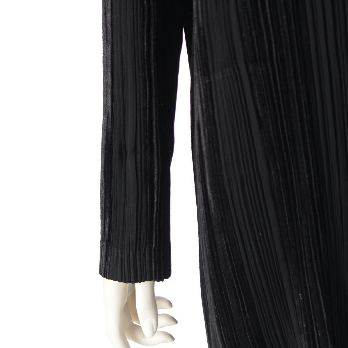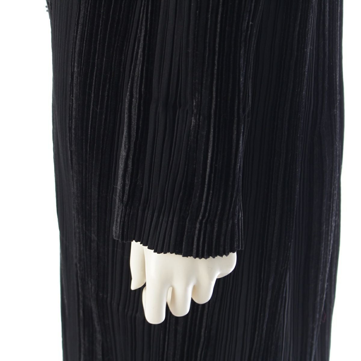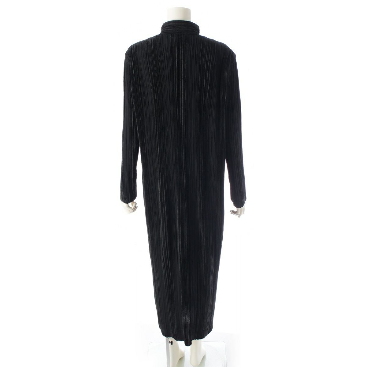 イッセイミヤケ ベロア 起毛切替 プリーツデザイン ロングワンピース コート IM53-FD917 ブラック L