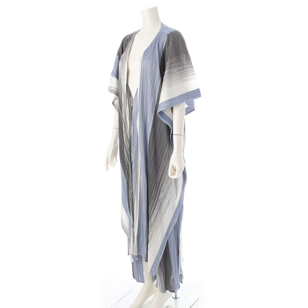 プリーツプリーズ イッセイミヤケ コットン ストライプ ノースリーブ パンツセットアップ PP91-JA742 /PP91-JF743 ホワイト ブルー 5