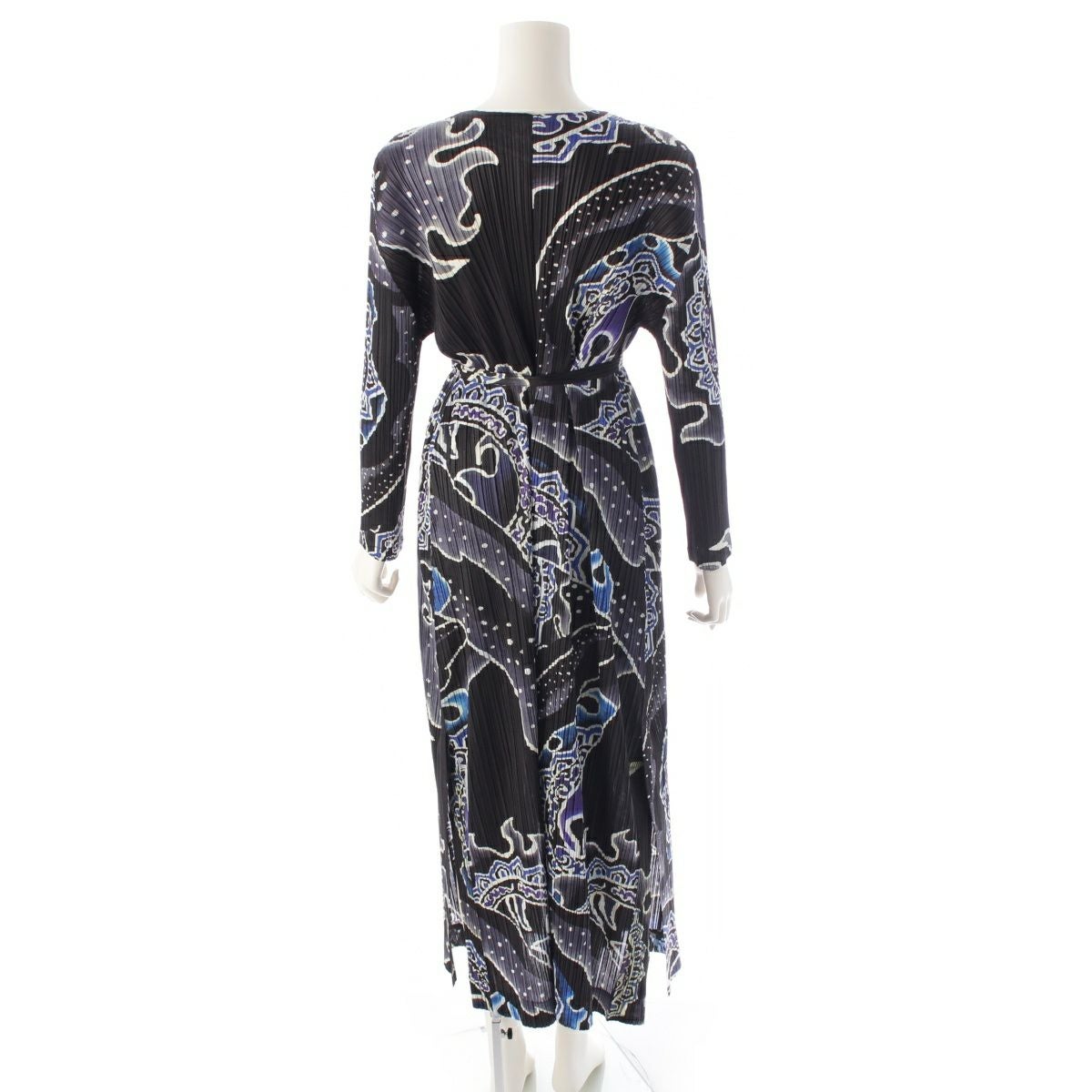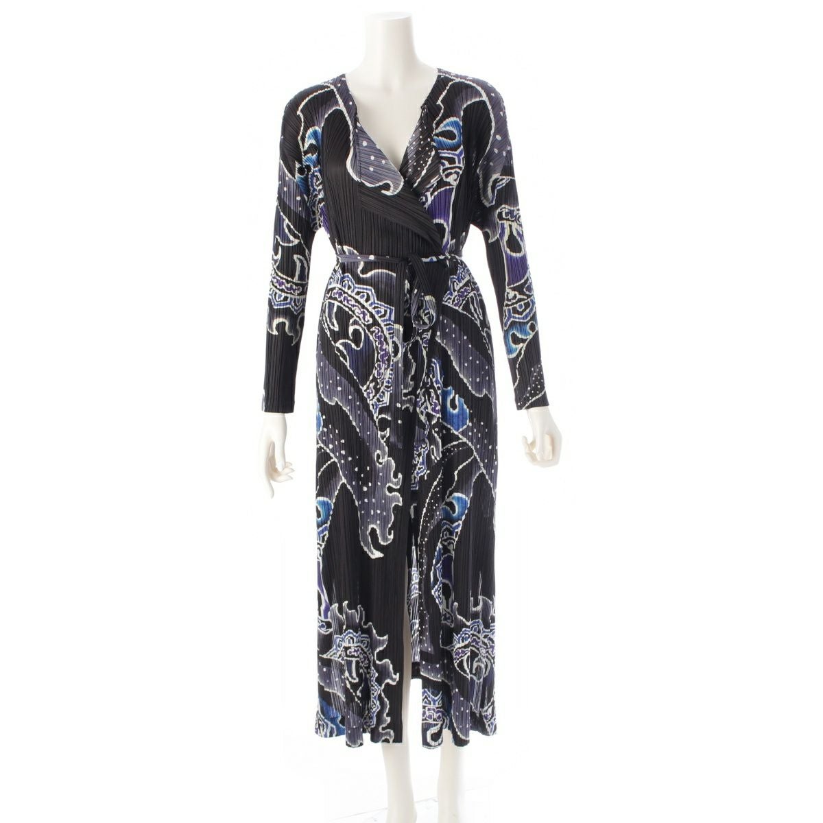 プリーツプリーズ イッセイミヤケ ねぶた フレイム 祭 和柄 ロング ウエストベルト カーディガン コート PP91-JA652 ブラック ブルー 3