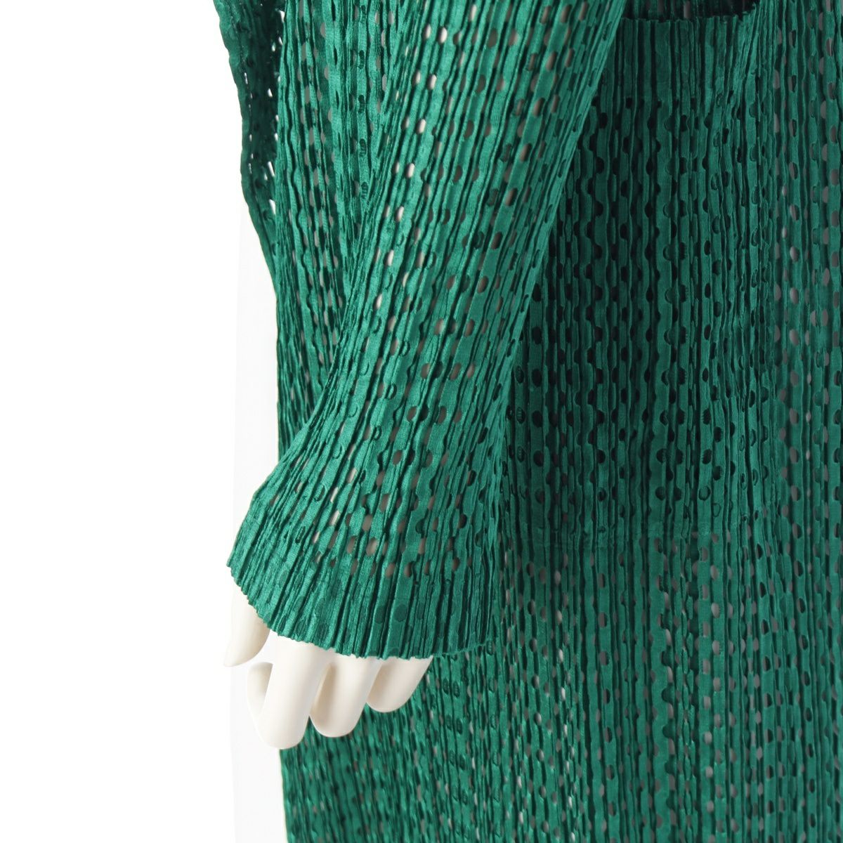 プリーツプリーズ イッセイミヤケ メッシュ パンチング ロング カーディガン PP73-JA815 グリーン 4