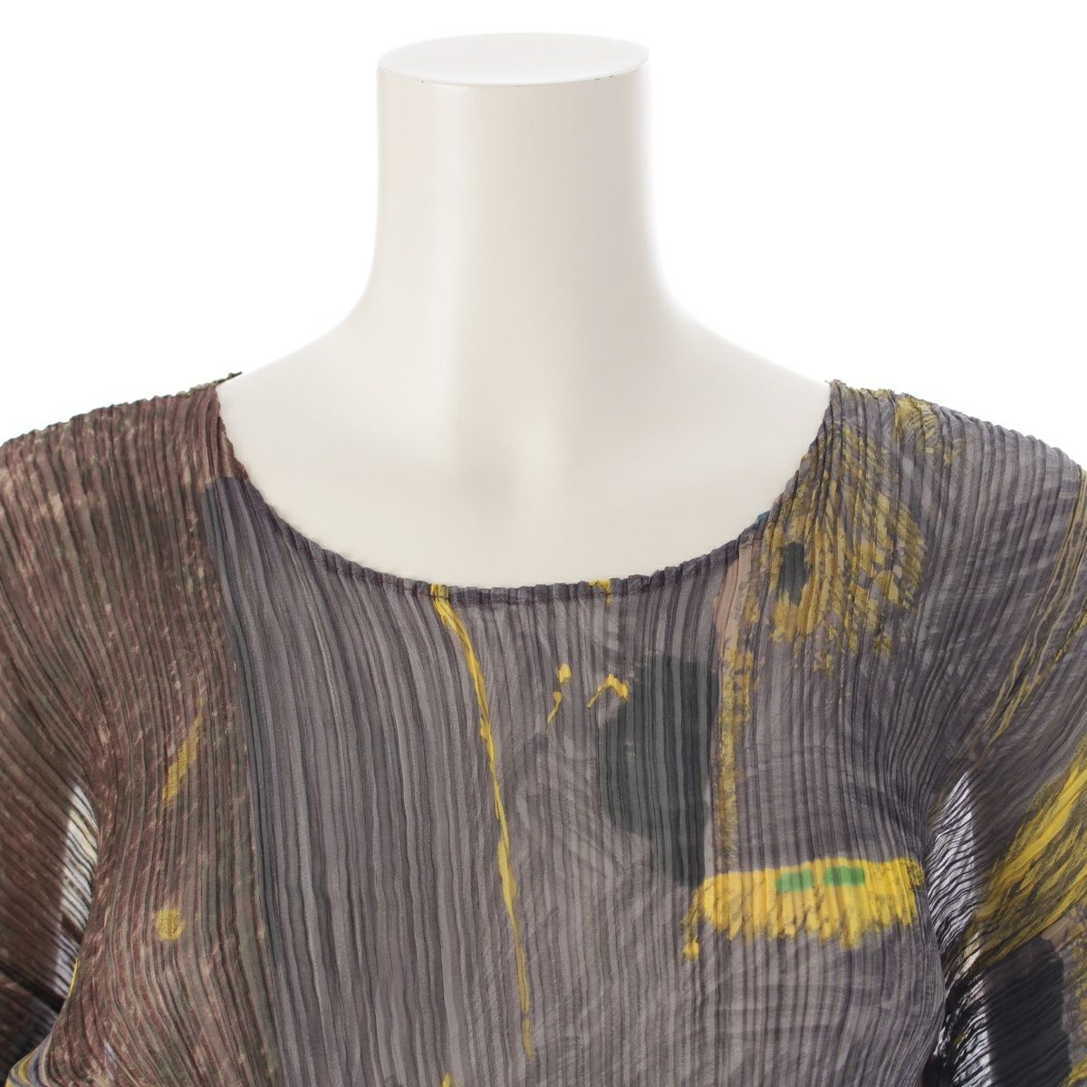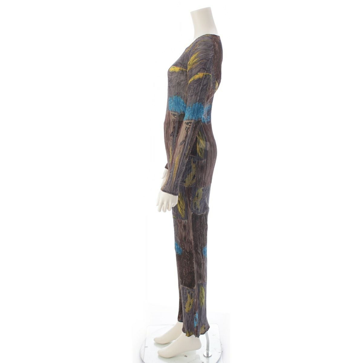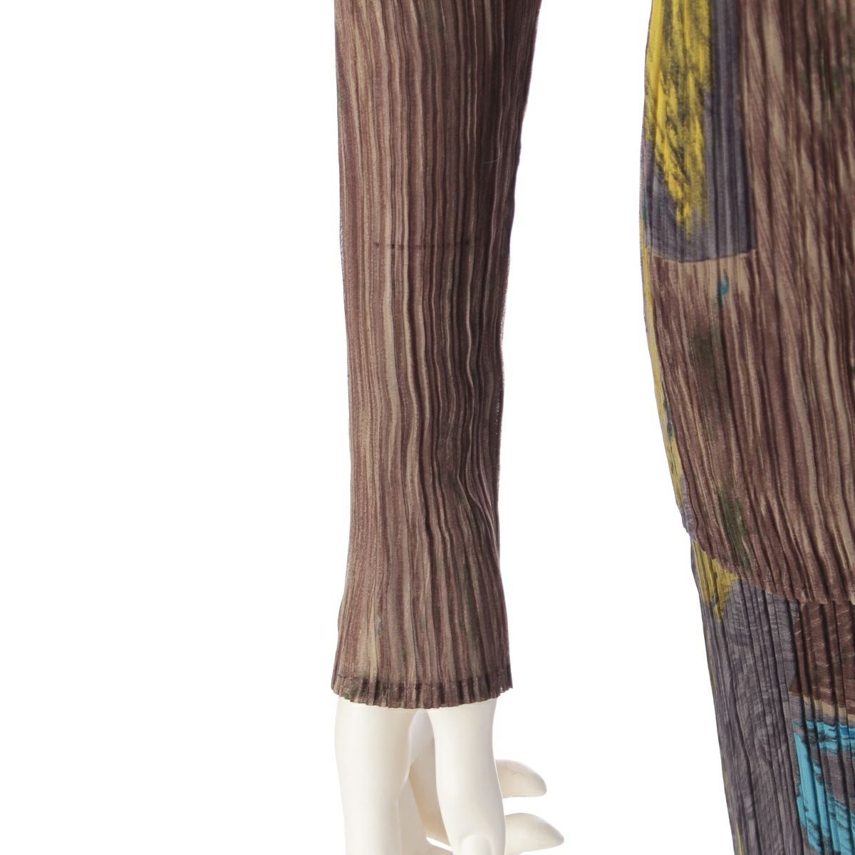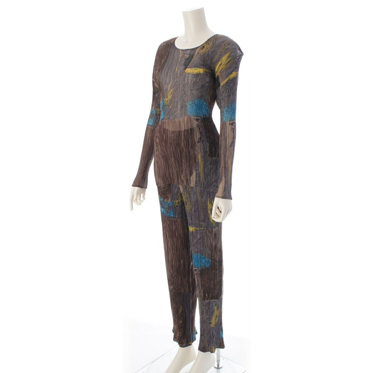 イッセイミヤケ ヴィンテージ プリーツデザイン アブストラクトパターン グラフィック クルーネックトップス パンツセットアップ IM69-FJ627 マルチカラー M
