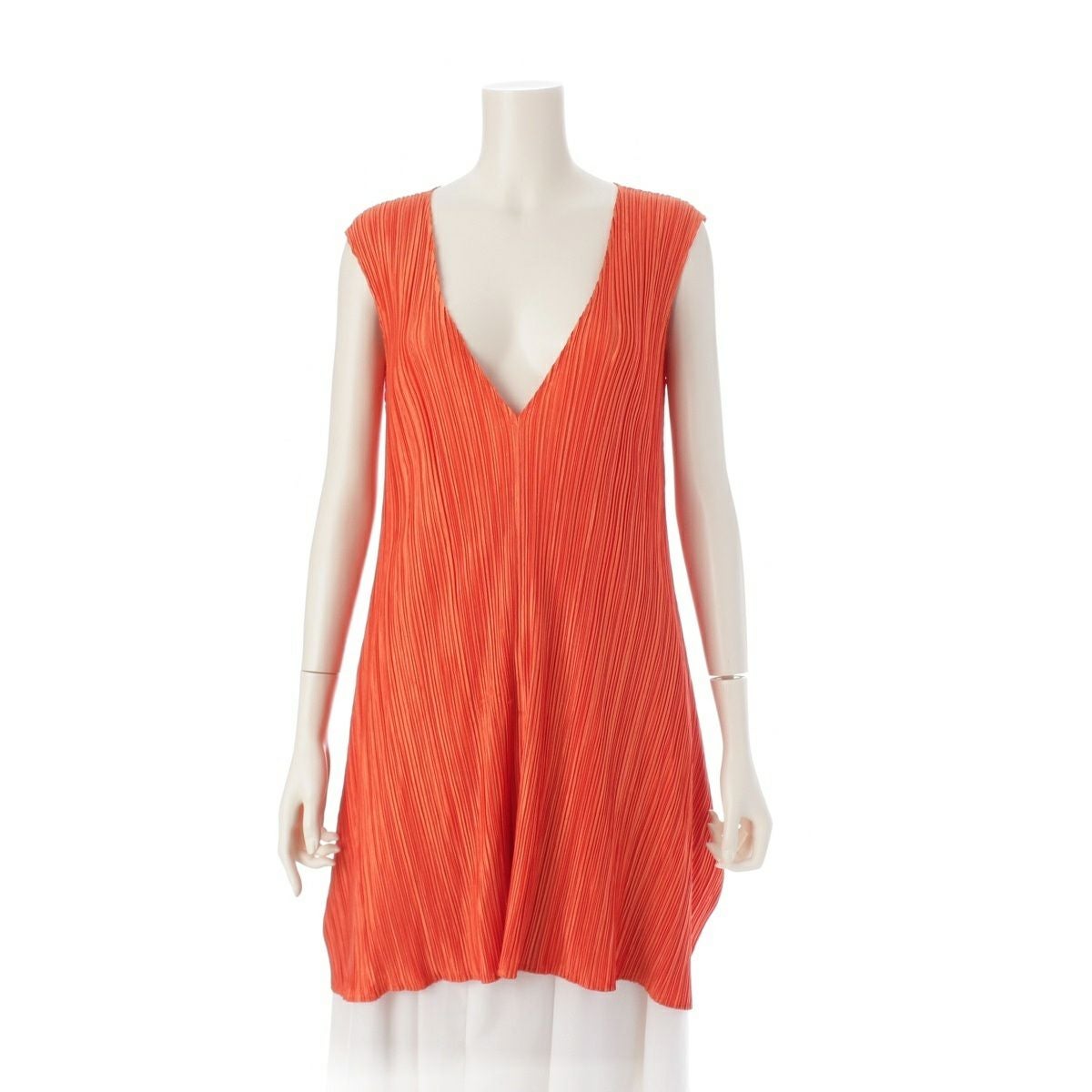 プリーツプリーズ イッセイミヤケ Aライン フレア チュニック ノースリーブ トップス PP11-JT108 オレンジ 3
