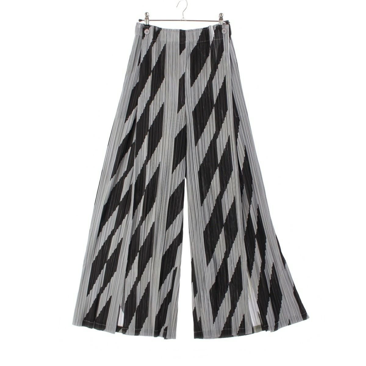 プリーツプリーズ イッセイミヤケ 19年 斜め チェック柄 パンツ ボトムス PP93-JF665 グレー ブラック 5