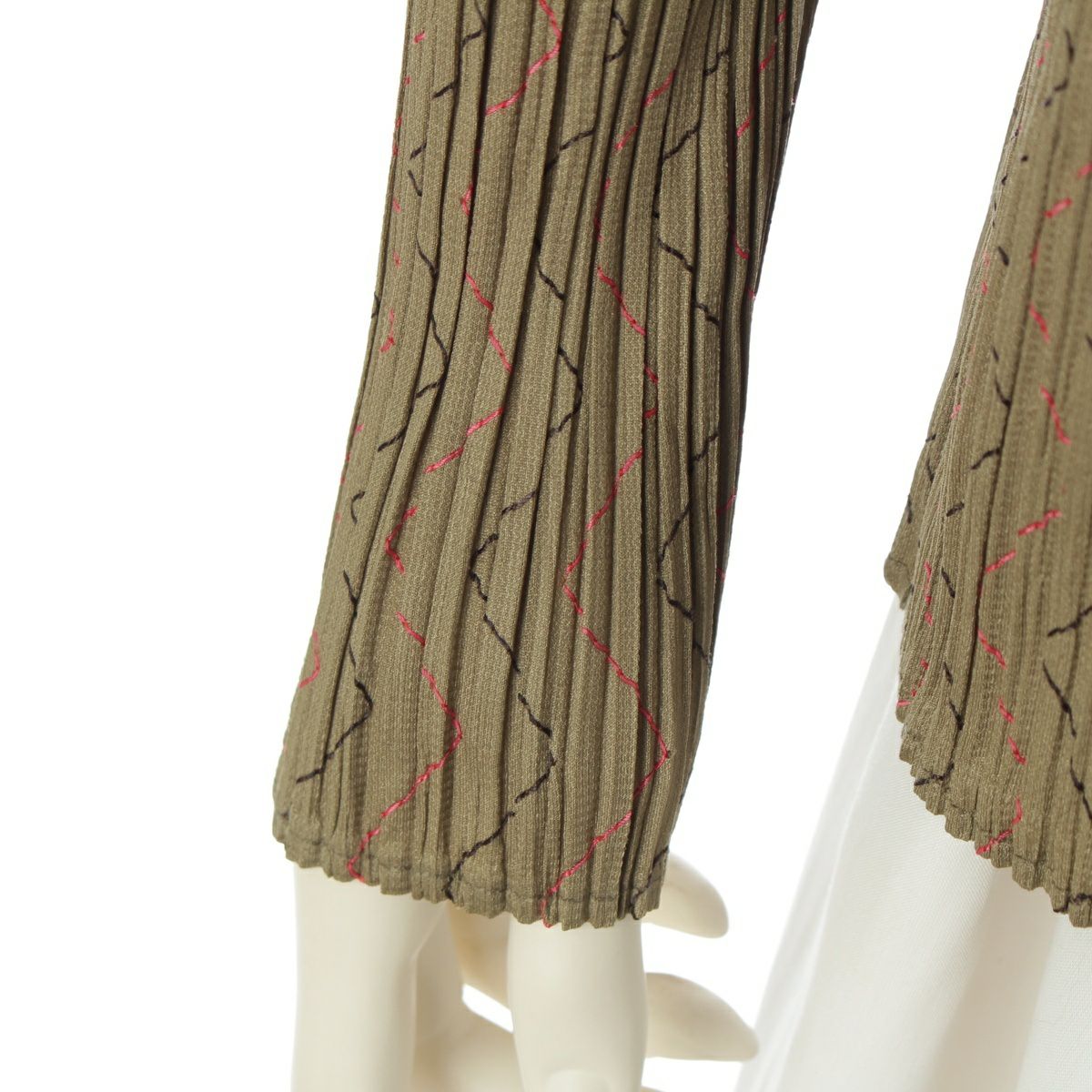 プリーツプリーズ イッセイミヤケ ジグザグ ステッチ ハイネック カットソー トップス PP94-JK584 ベージュ カーキ 4