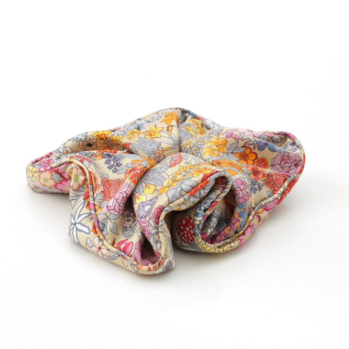エルメス シルク クラウディア 総柄 シュシュ ヘアアクセサリー マルチカラー ベージュ系