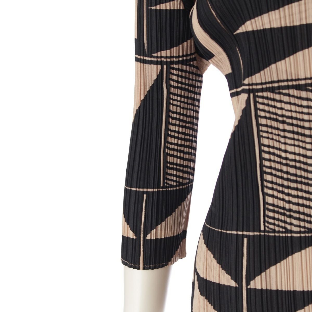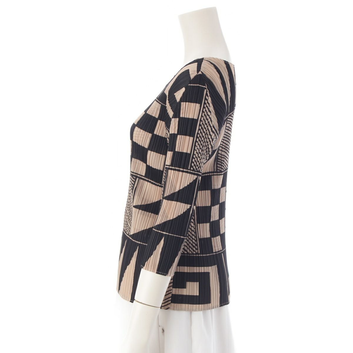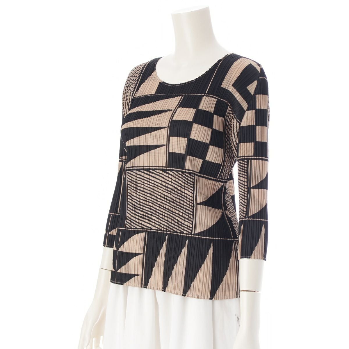 プリーツプリーズ イッセイミヤケ 図形 総柄 7分袖 クルーネック カットソー トップス PP21-JK639 ブラック ベージュ 3