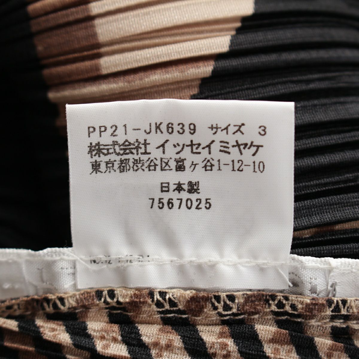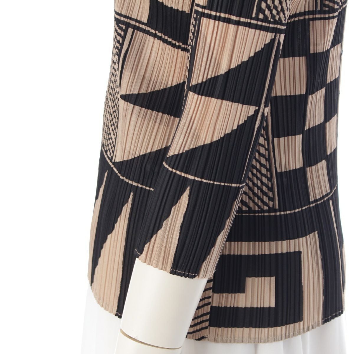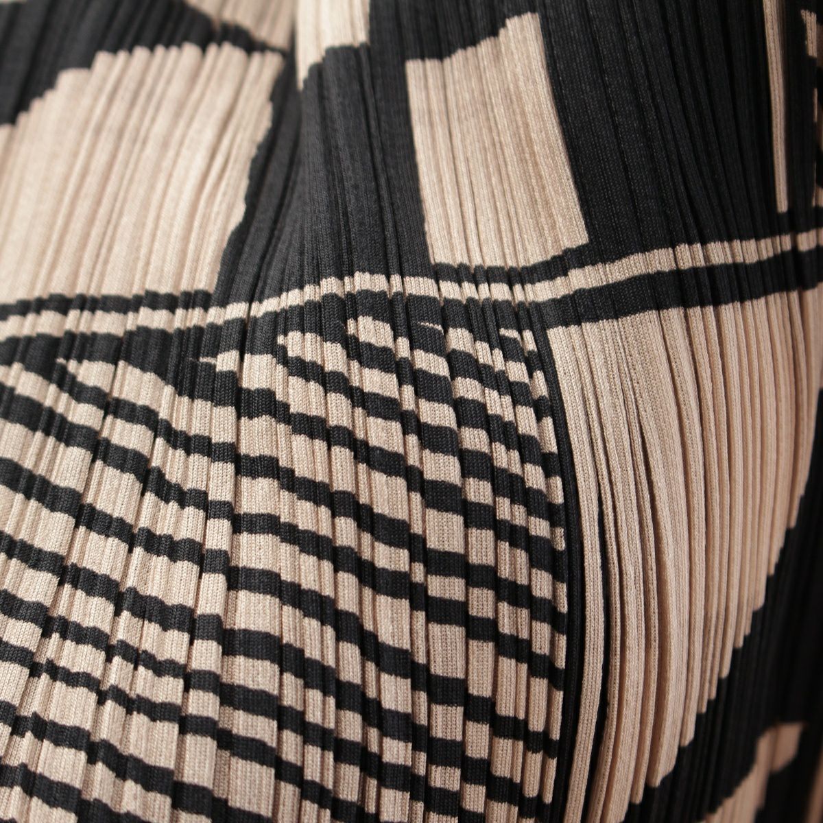 プリーツプリーズ イッセイミヤケ 図形 総柄 7分袖 クルーネック カットソー トップス PP21-JK639 ブラック ベージュ 3
