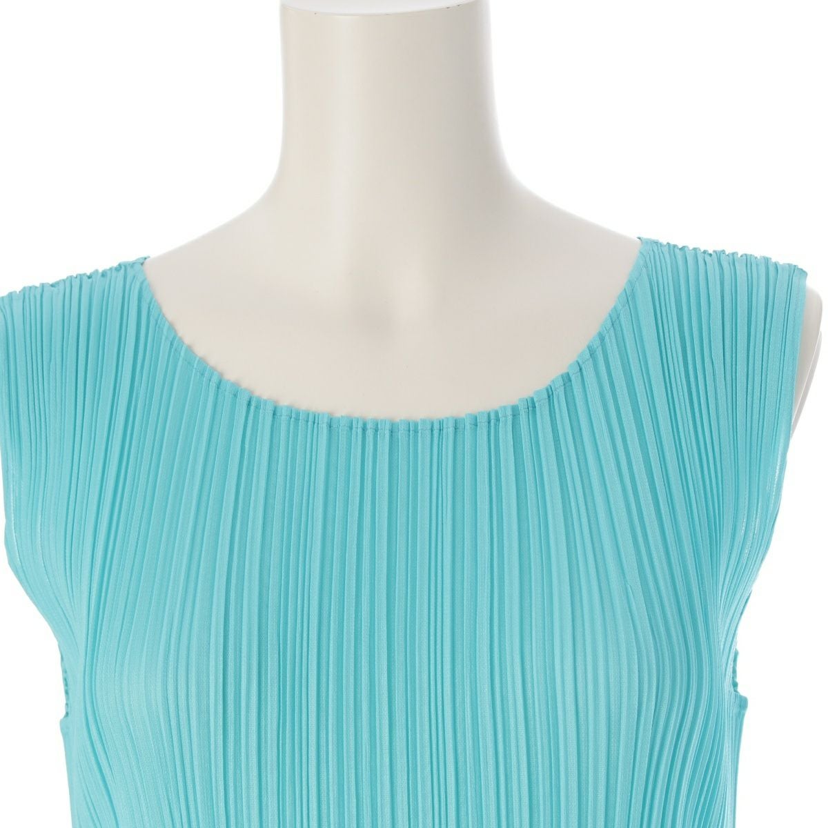 プリーツプリーズ イッセイミヤケ ノースリーブ スリット ロング ワンピース ドレス PP63-JH143 ライトブルー ターコイズ系 4