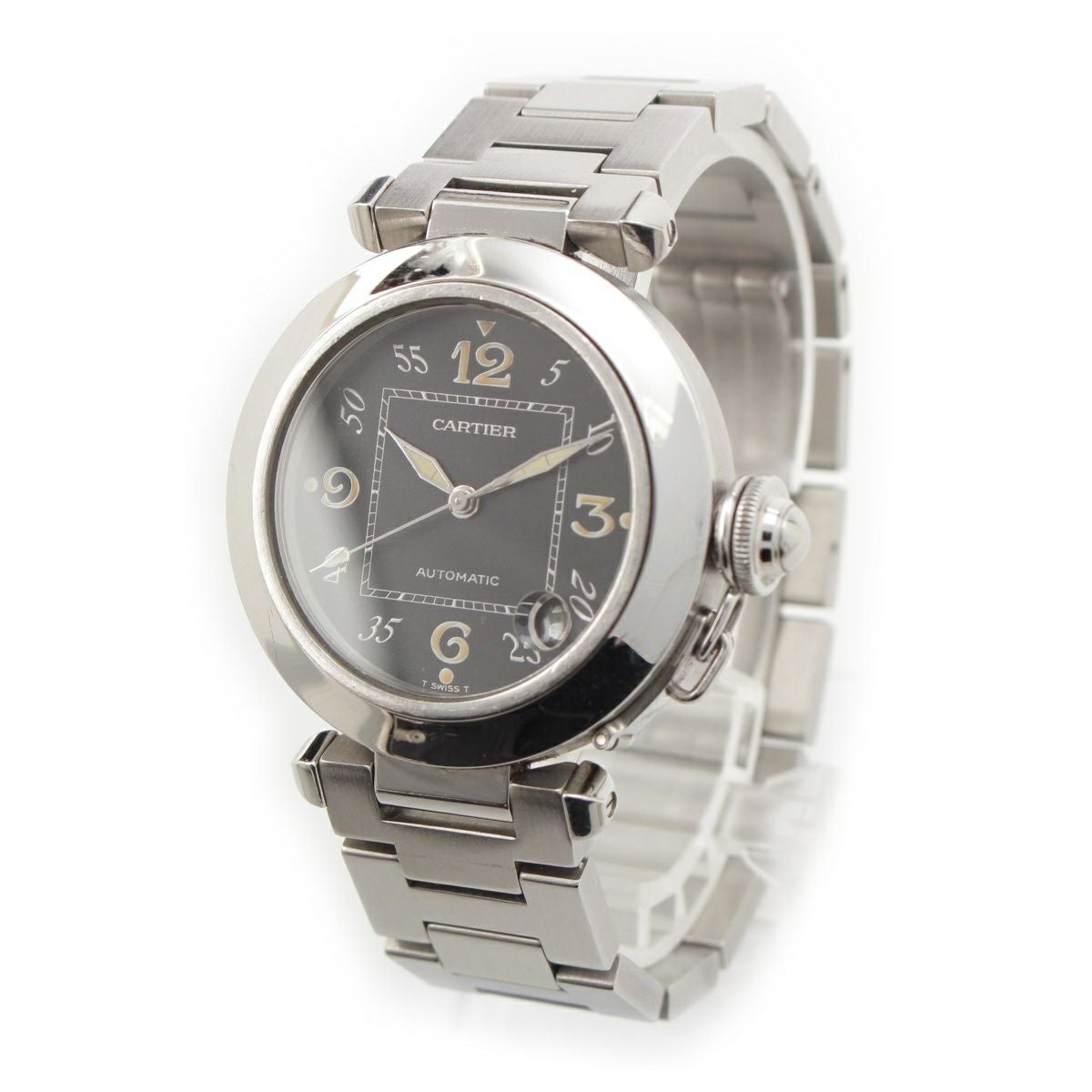 カルティエ パシャC AT SS 35mm ボーイズ 腕時計 自動巻き ブラック文字盤 W31043M7 2324CC786886 シルバー