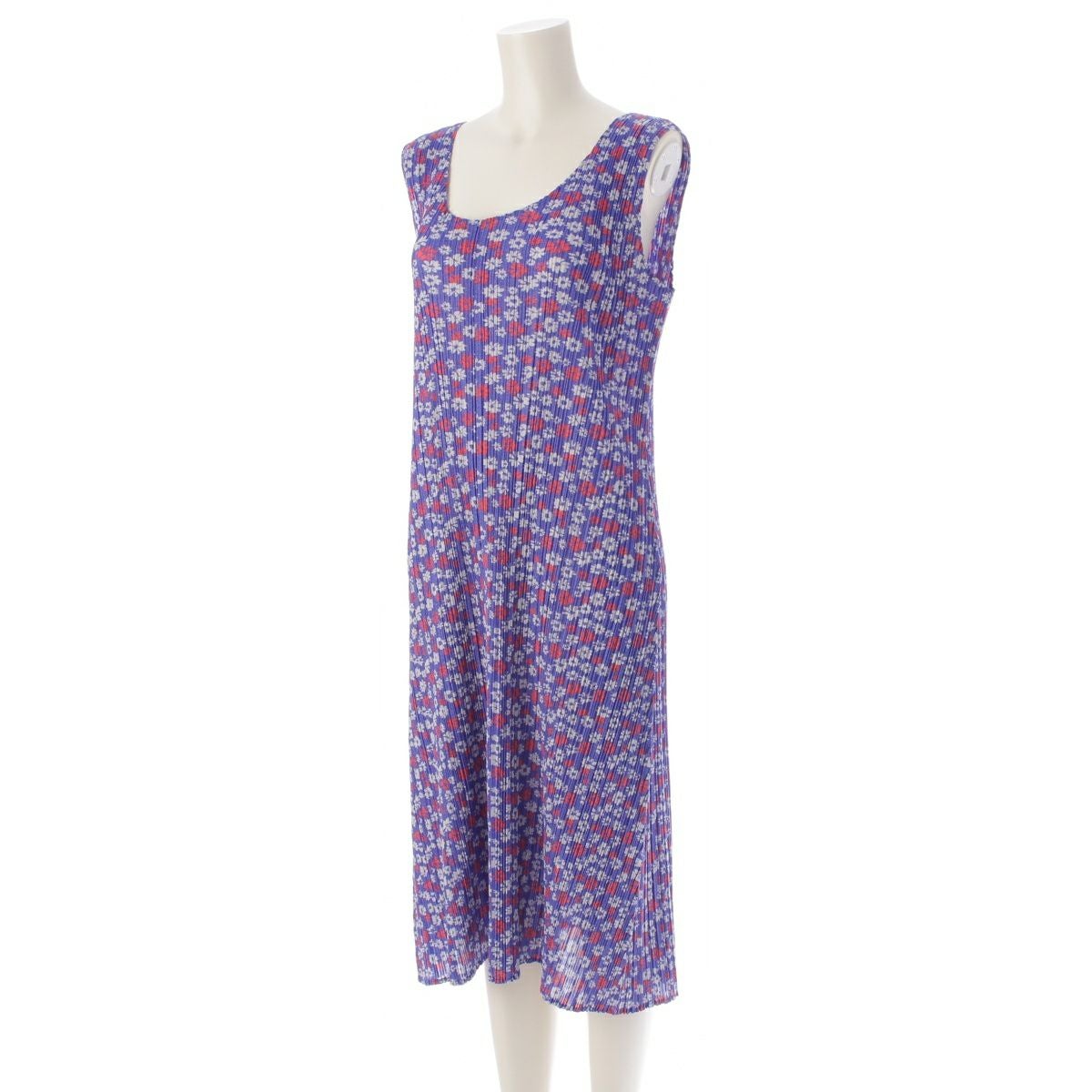 プリーツプリーズ イッセイミヤケ 2002年 花柄 ノースリーブ ロング ワンピースセットアップ PP22-JH875 ブルー 4