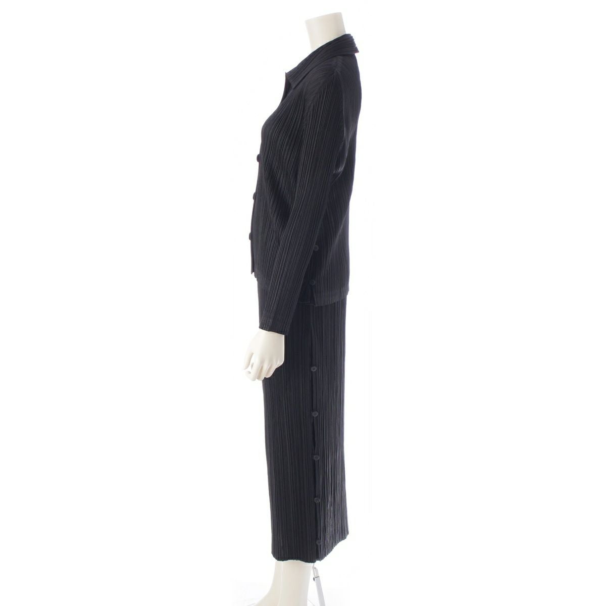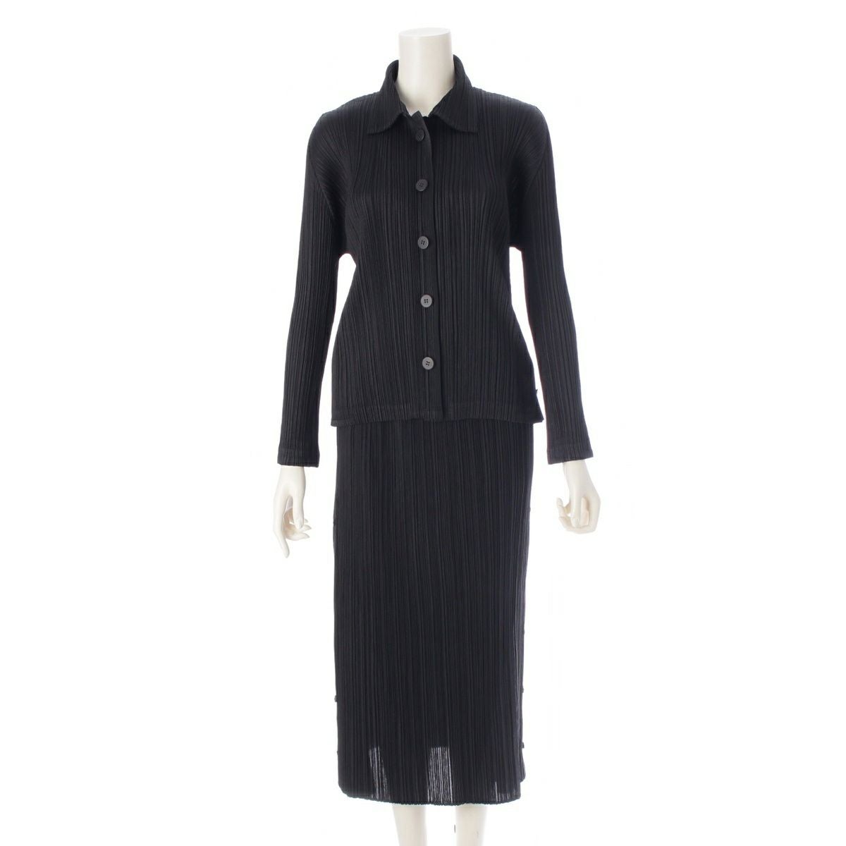 プリーツプリーズ 2006 サイドボタン 長袖 シャツ ロング スカートセットアップ ブラウス トップス ブラック 3