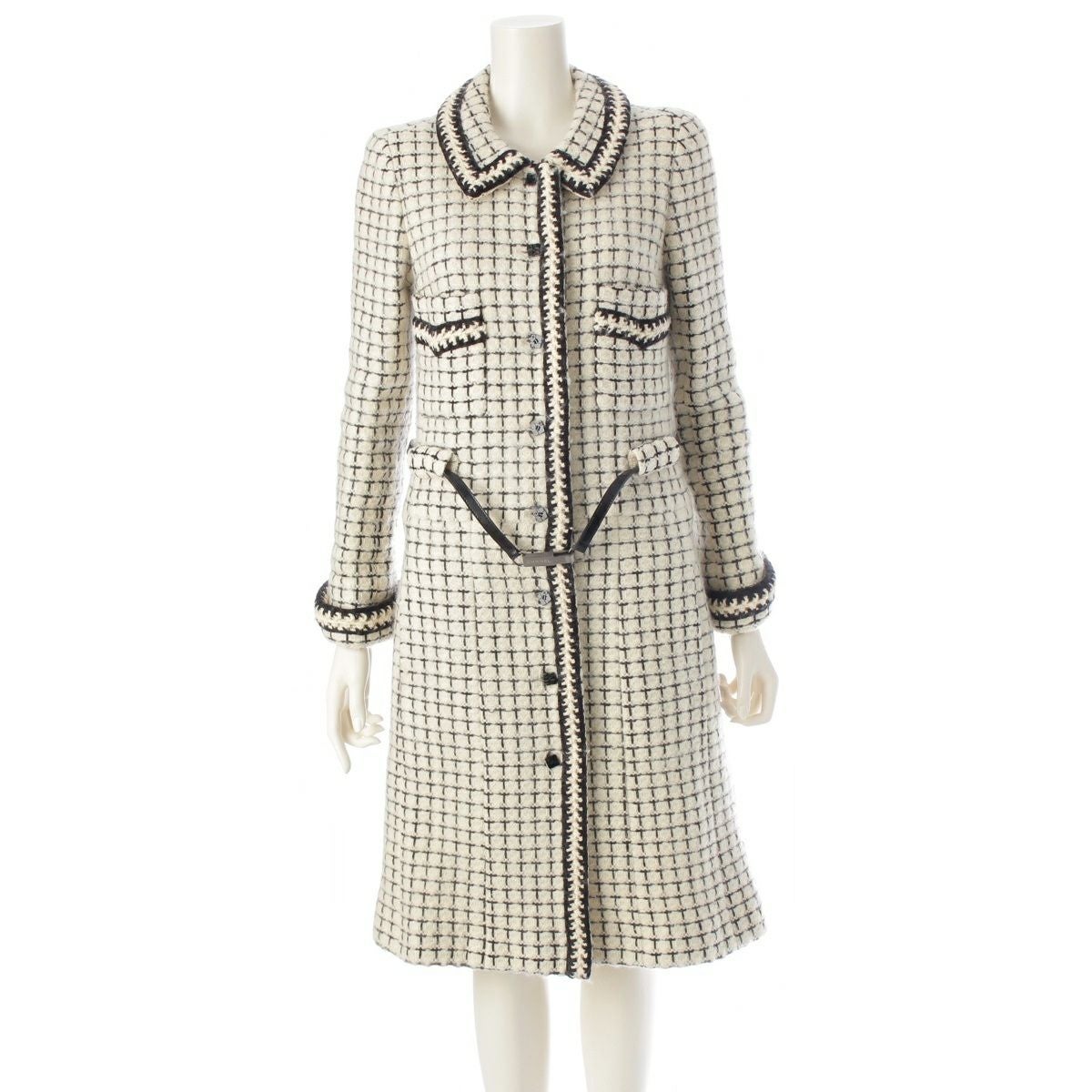 シャネル 00A ココマーク ウール ツイード コート アウター P16301 ホワイト ブラック 42