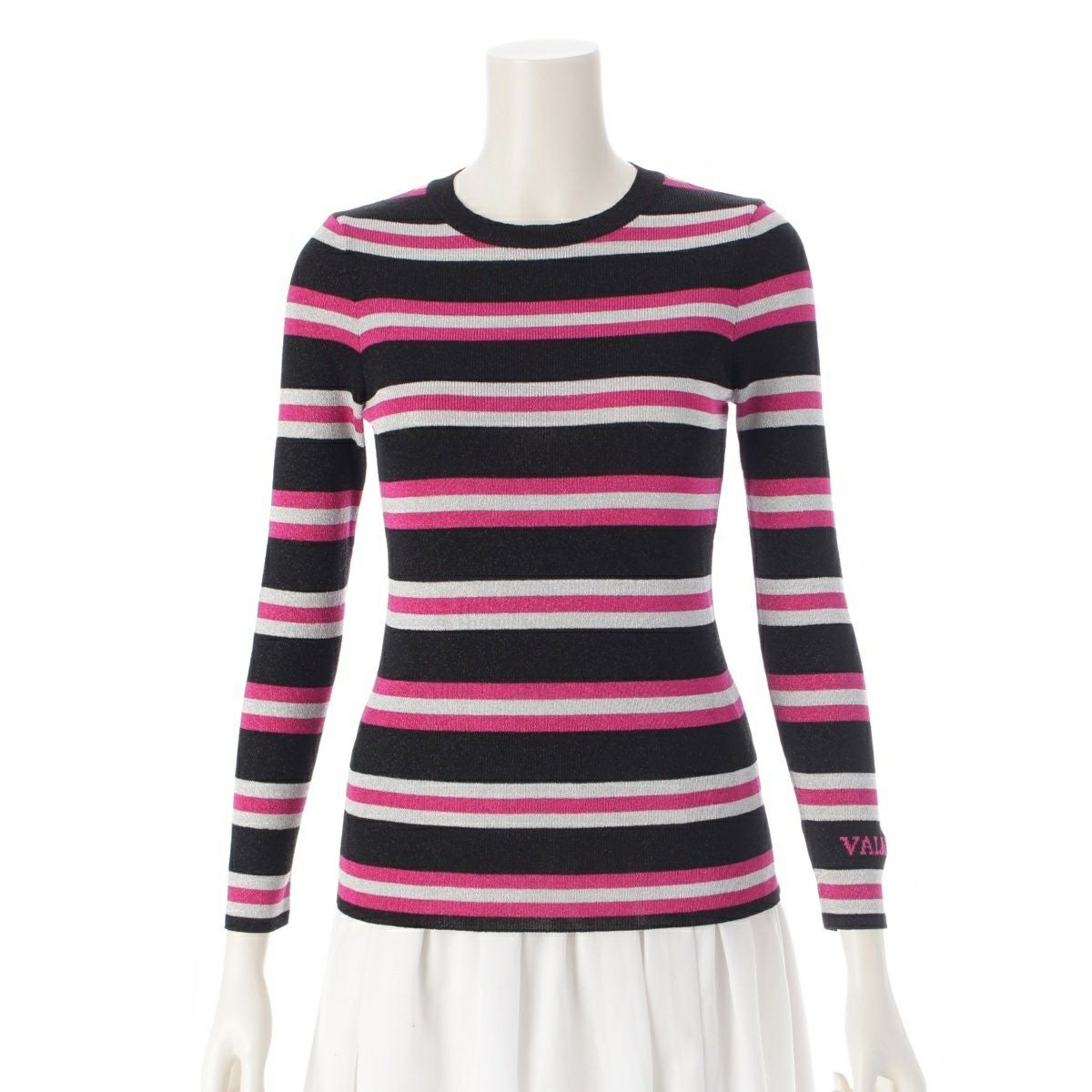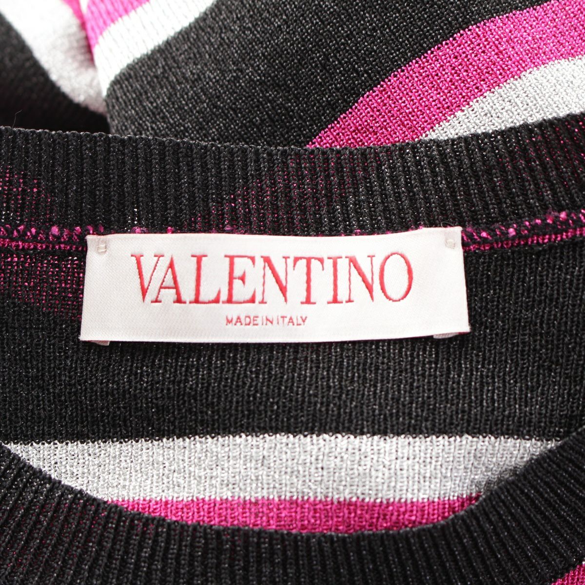 ヴァレンティノ レーヨン クルーネック ボーダー ロゴ セーター ニット XB3KC31V707 ピンク ブラック XS