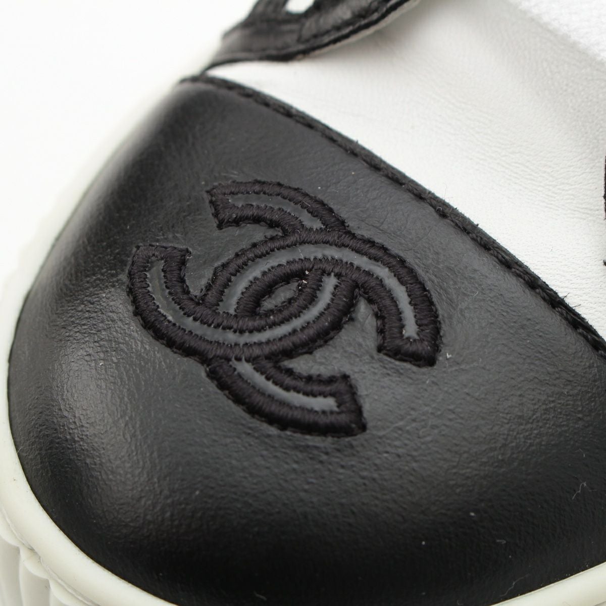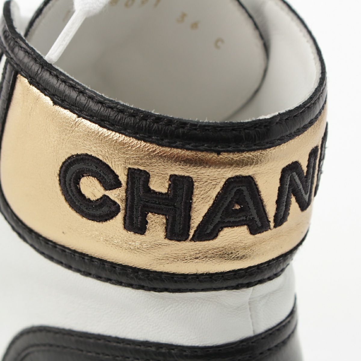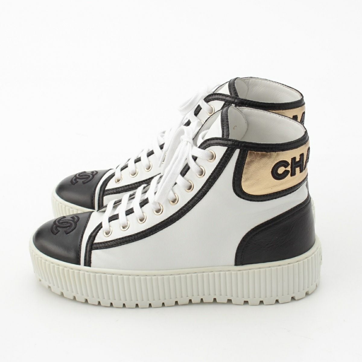 シャネル レザー×ファブリック ココマーク スニーカー シューズ G38091 ホワイト ブラック ゴールド 36