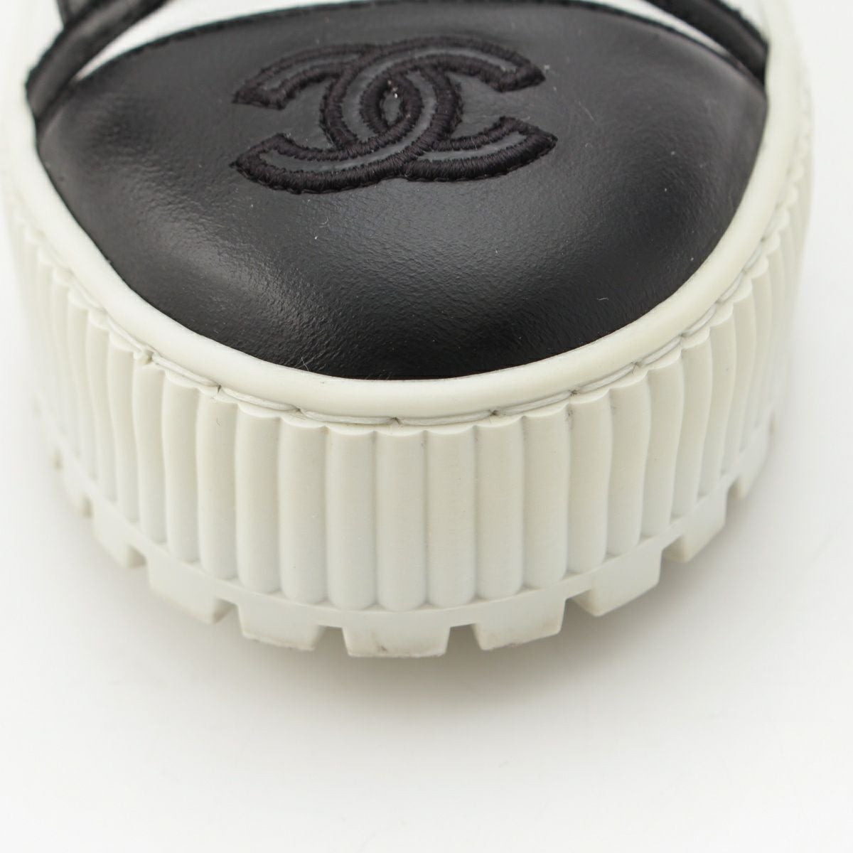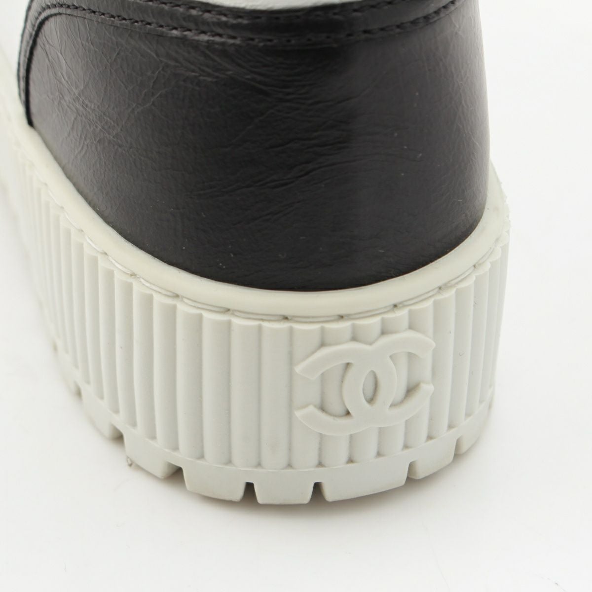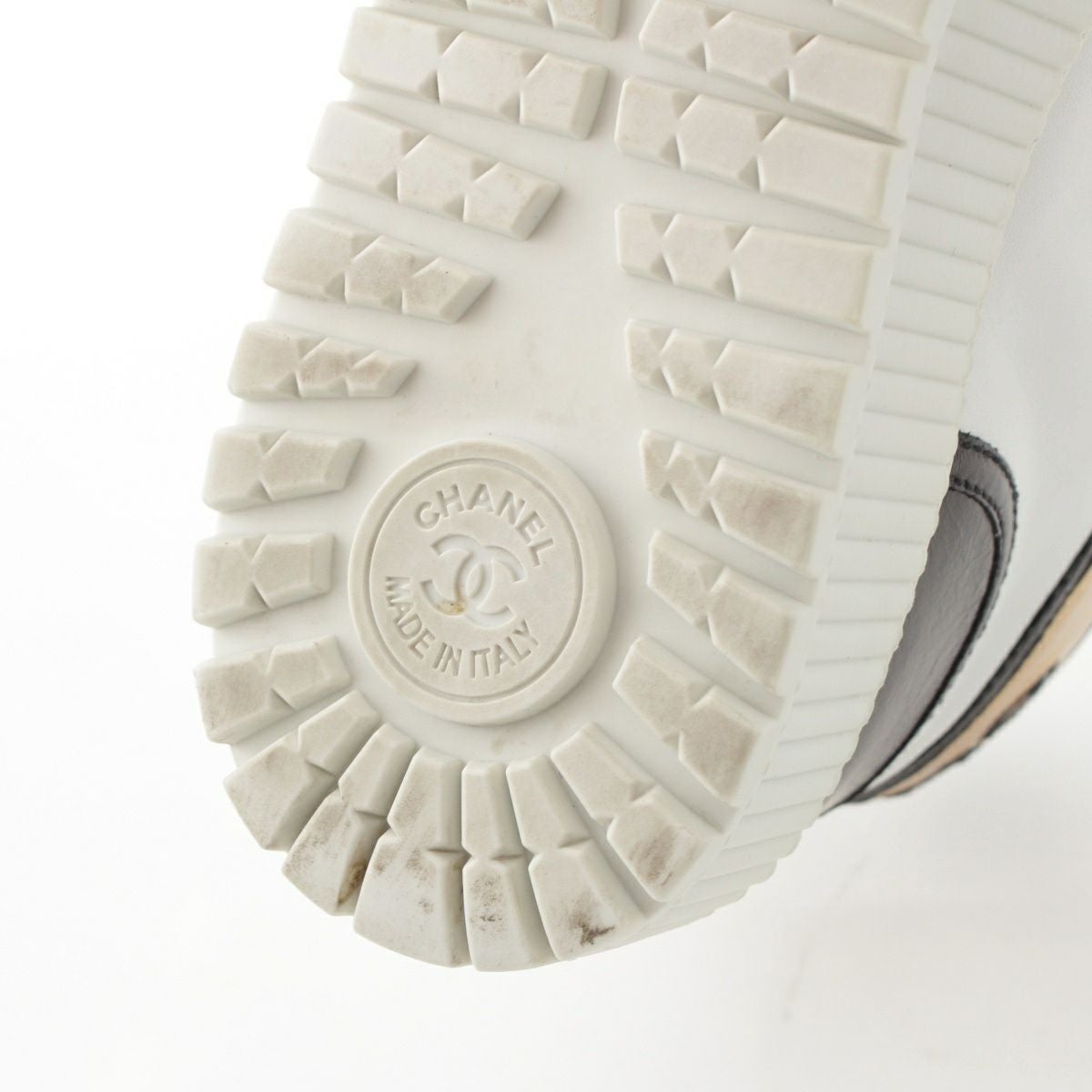 シャネル レザー×ファブリック ココマーク スニーカー シューズ G38091 ホワイト ブラック ゴールド 36