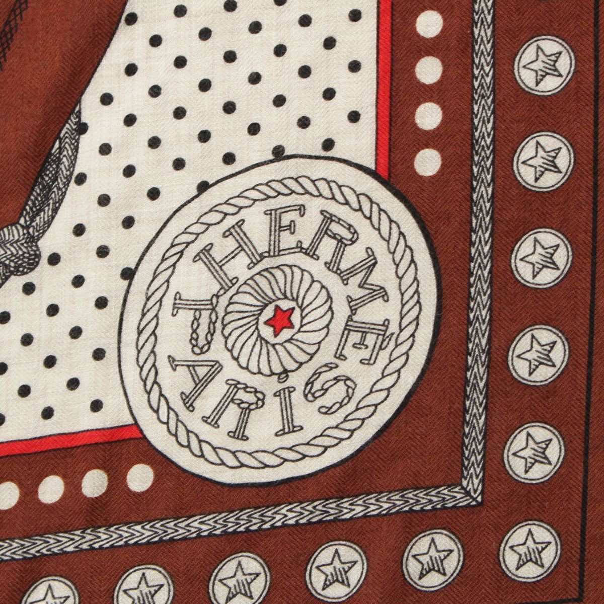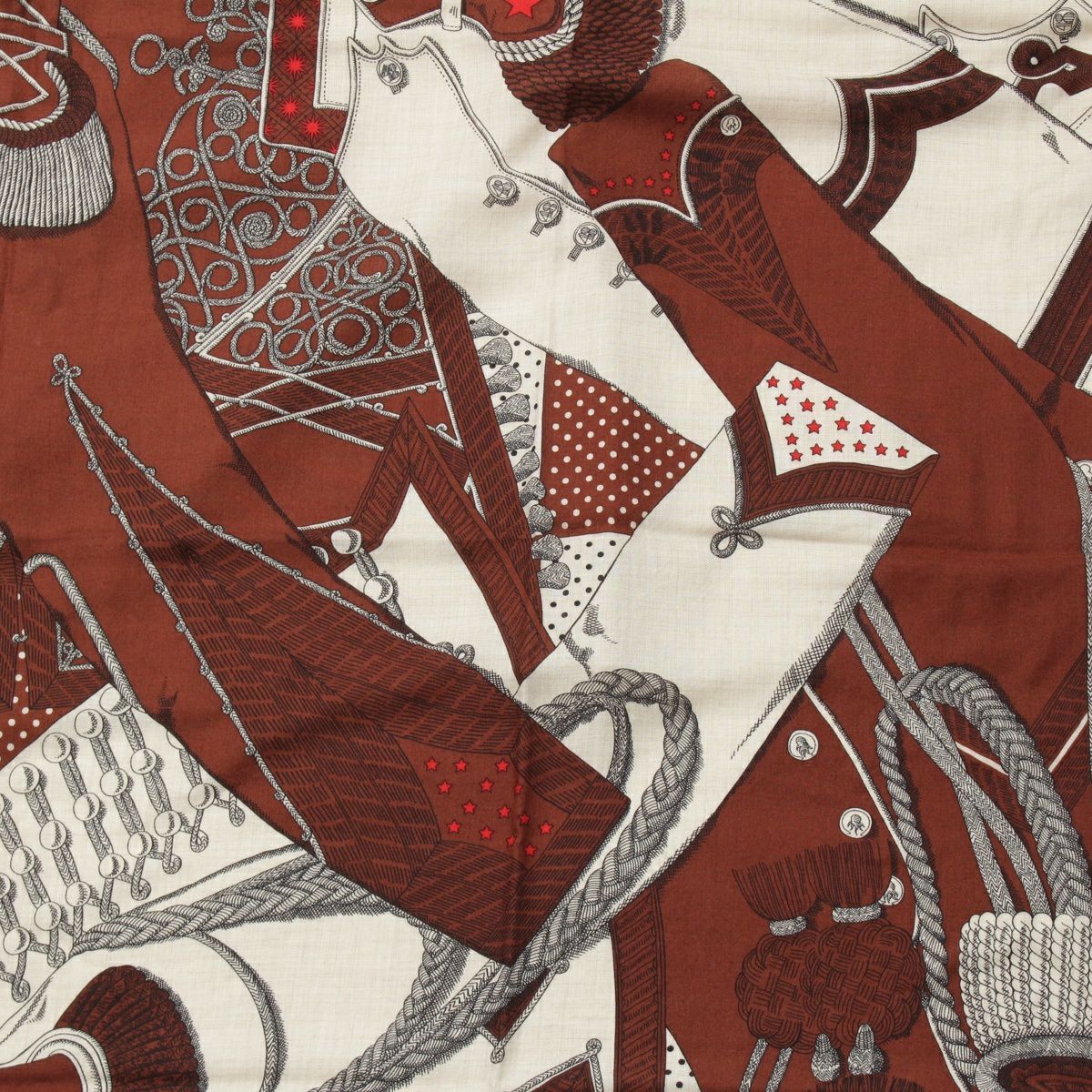 エルメス 23AW カレジェアン140 Zouaves et Dragons ズアヴとドラゴン カシミヤ シルク スカーフ バンダナ マロン ナチュラル レッド マルチカラー