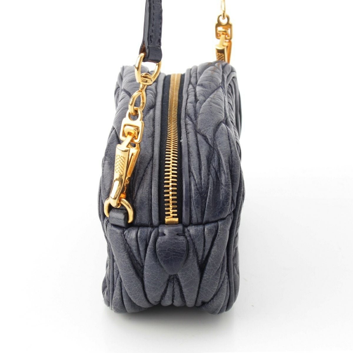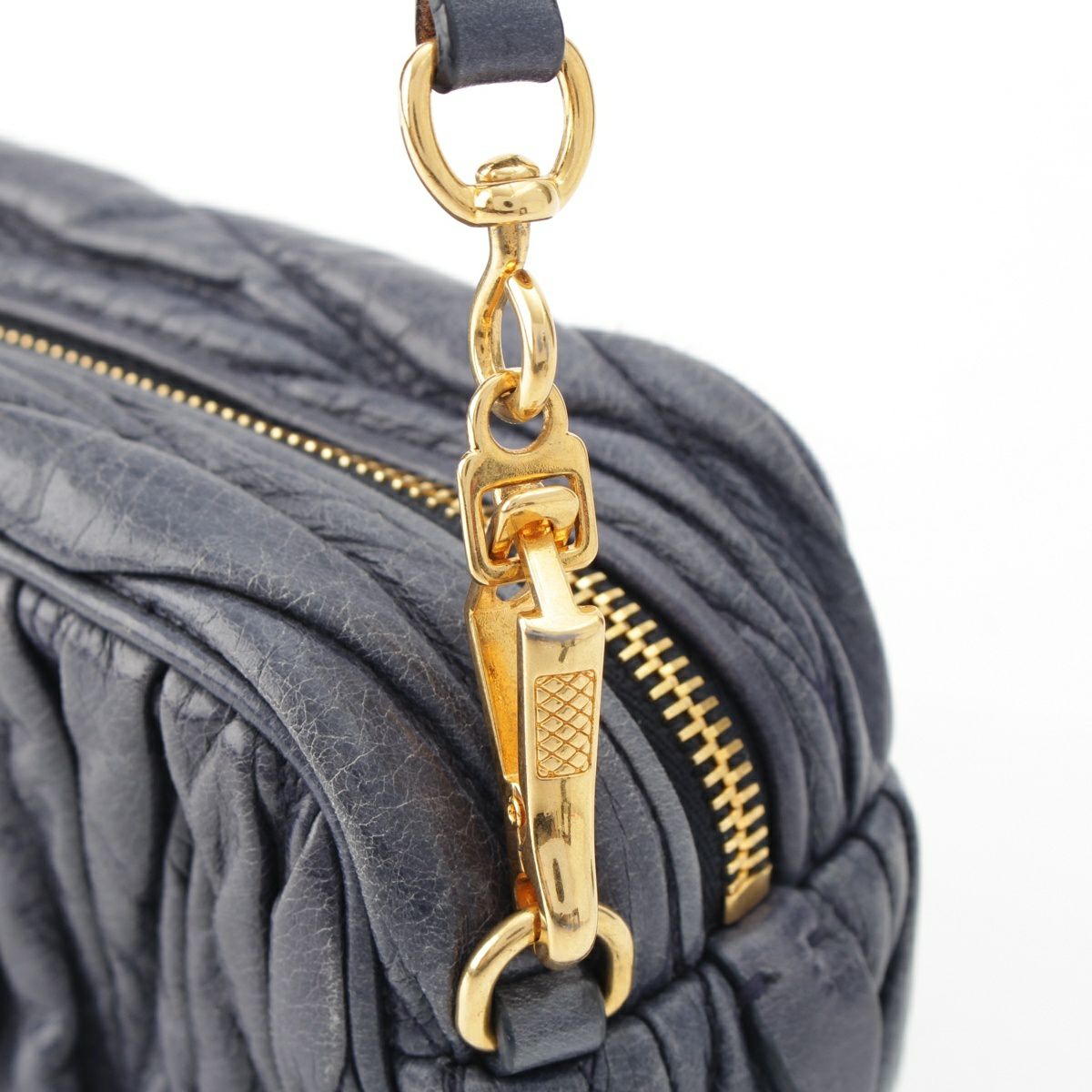 ミュウミュウ マテラッセ レザー ロゴ ミニ カメラ ショルダーバッグ ブルー ネイビー