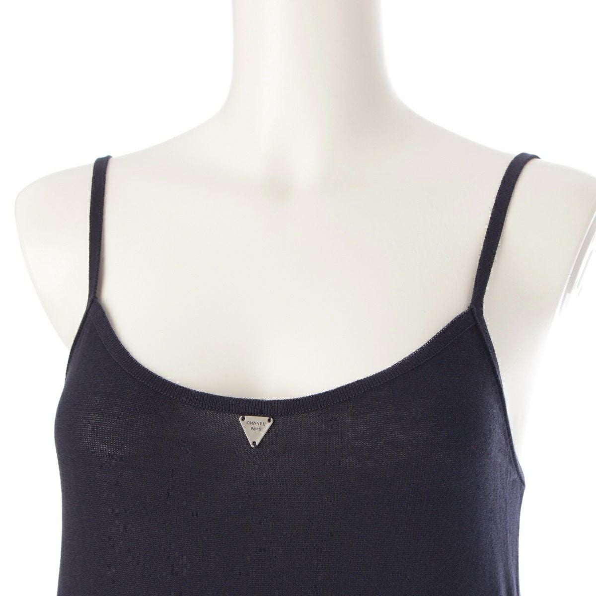 シャネル 00C コットン ロゴプレート キャミソール タンクトップ トップス P15034 ネイビー 38