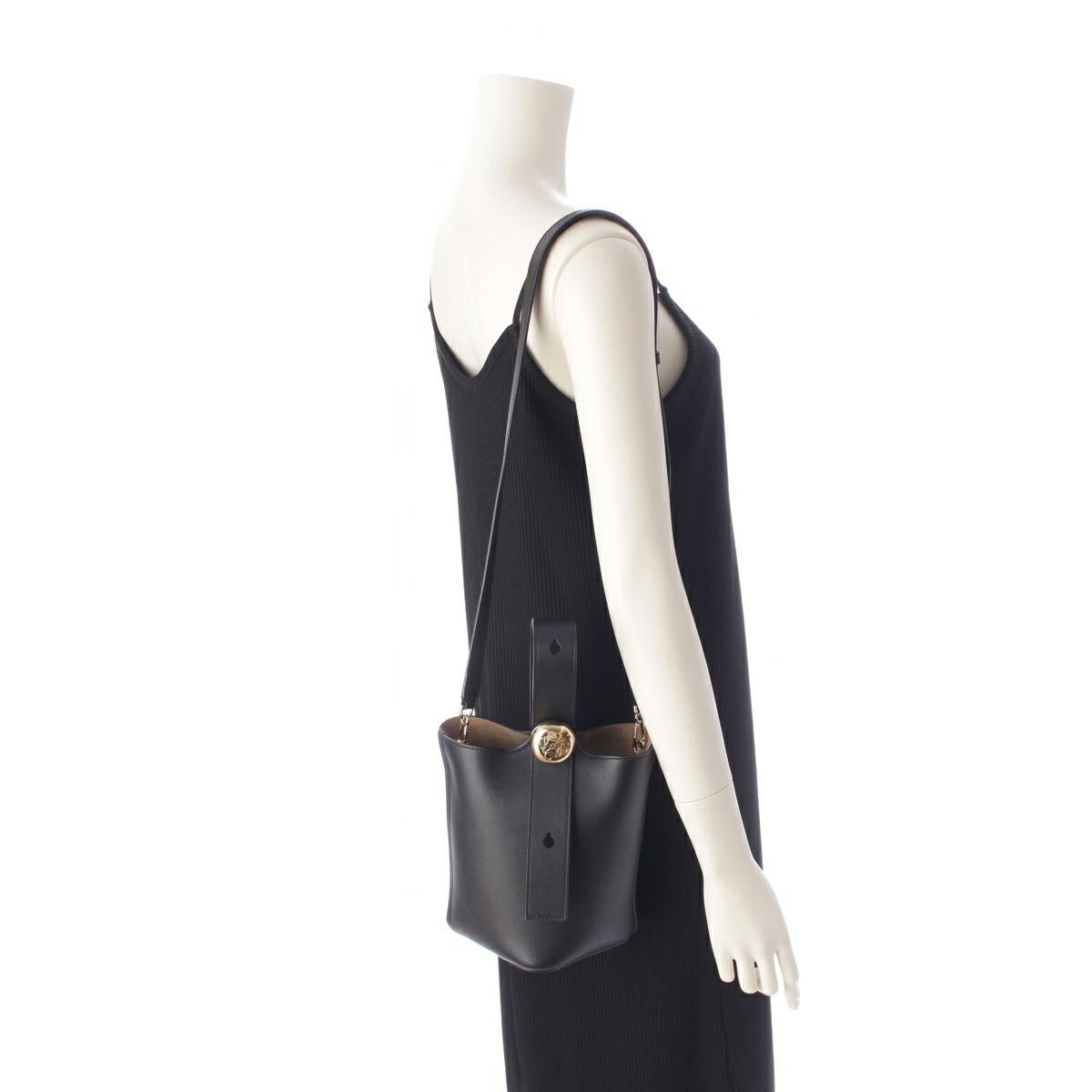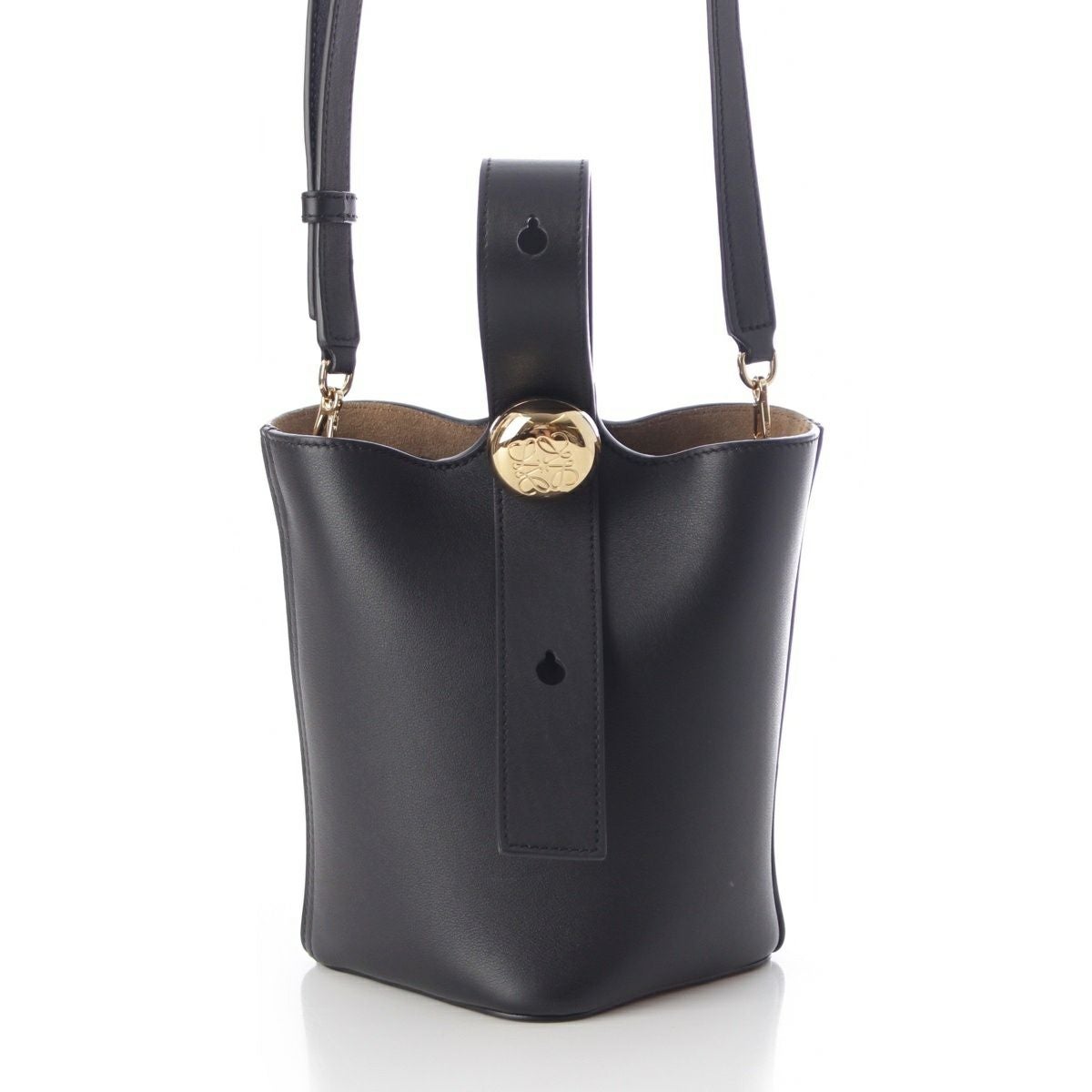 ロエベ ペブル バケット ミニ スムースカーフ レザー 2Way ショルダー ハンドバッグ ブラック