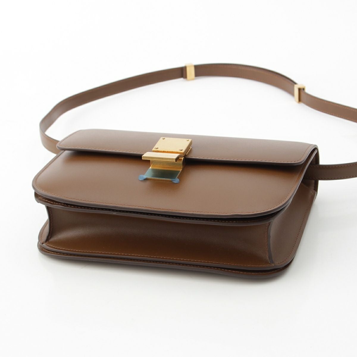 セリーヌ クラシック ボックス ミディアム レザー ショルダーバッグ ブラウン